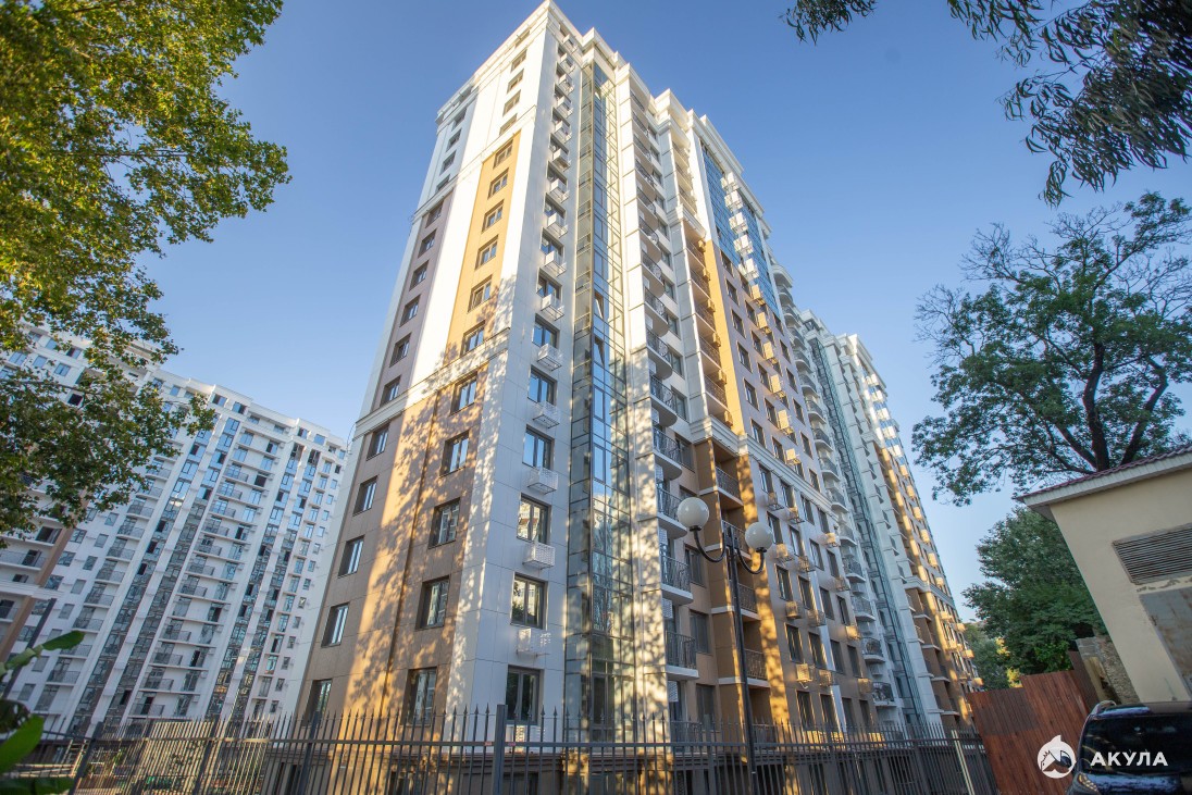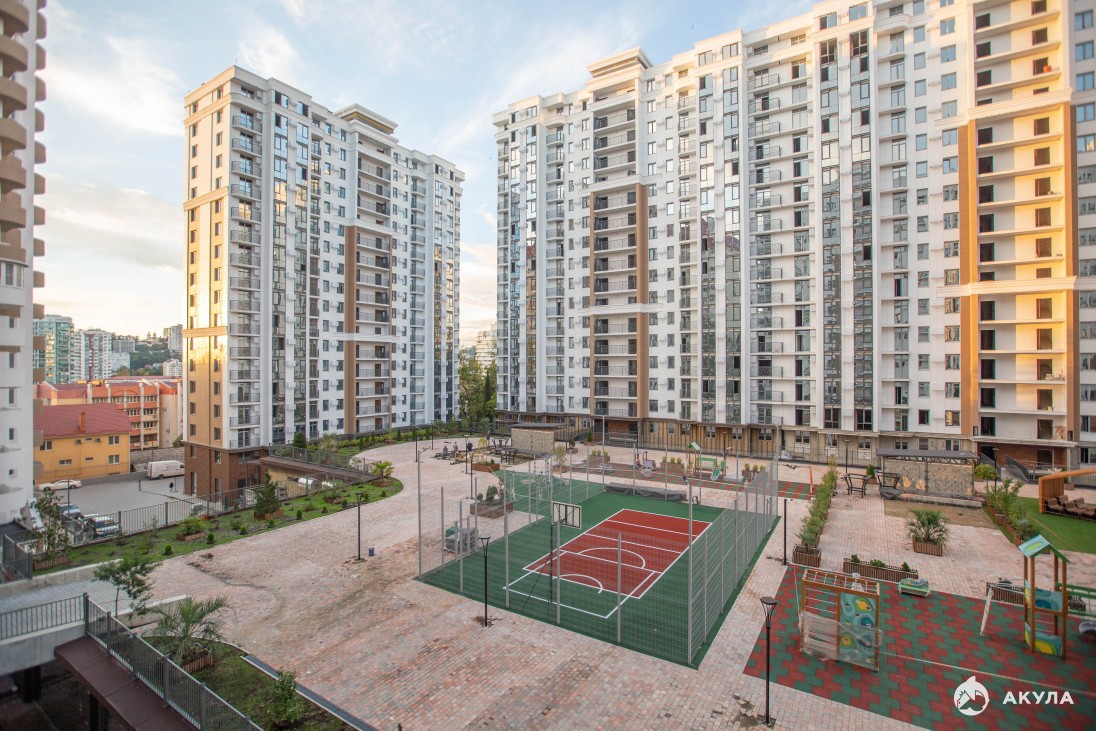Придомовая территория огорожена и озеленена, так же есть система оповещения при пожаре, детская и спортивная площадки, двухуровневый паркинг.