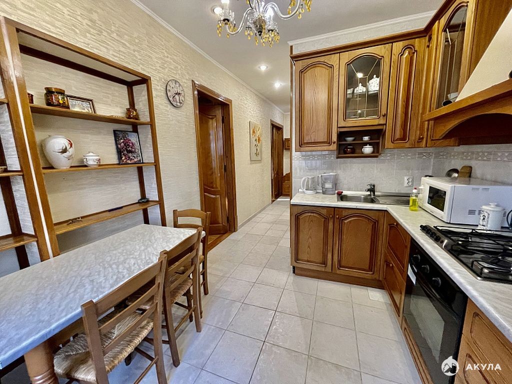 Квартира спланирована в 2 спальни и кухню-гостиную. Санузел, кабинет. Выполнен качественный дизайнерский ремонт, при продаже остается вся мебель и техника.