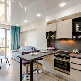 Квартира с Дизайнерским ремонтом, 48м2, распланирована в просторную кухню-гостиную, светлую спальню с выходом на балкон, гардеробную, санузел и прихожую. Витражные окна с восхитительным видом на...