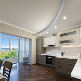 Один из самых престижных домов города сочи. Очень удобен для проживания во дворе дома отличная детская площадка, Кафе, ресторан, магазин все в доме. 2 уровня парковки, У ресторана своя собственная парковка никак не мешают гости комфортному проживанию Дом строился по 214 фз...