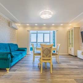 Полноценная двухкомнатная квартира. Гостиная с панорамным видом на море и Морской порт, кухня-столовая, спальня, гардеробная, кладовка. Из всех комнат открывается шикарный вид. Санузел раздельный. В ванной комнате душевая кабина и джаузи. На сегодняшний день это один из...
