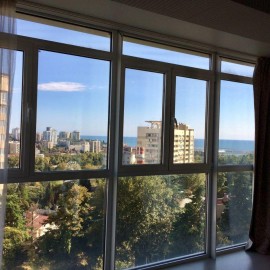 Самая видовая квартира в самом лучшем доме г. Сочи. Чистя, уютная, сам бы жил. Дом элит-класса, подземная парковка, детская площадка, два подъезда и в каждом по четыре лифта, вентилируемый фасад, хорошая звукоизоляция. Звоните.