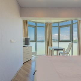 Квартира с потрясающим видом на море и Морской порт. Пространство распланировано в просторную гостиную комнату объединённую с кухней, большую спальную комнату, и объединённый санузел. При входе сделана просторная гардеробная. В квартире установлены панорамные окна от...