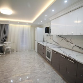 Полноценная двухкомнатная квартира в доме бизнес-класса. Площадь 90м: распланирована в 2 изолированные спальни и кухню-гостиную. Выполнен ремонт, установлена необходимая мебель и техника. В квартире панорамное остекление. Открывается прекрасный вид на город, горы и...