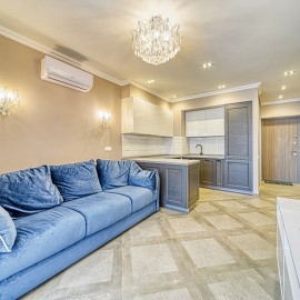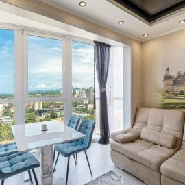 Квартира с потрясающим видом на море и Морской порт. Жилое пространство распланировано в просторную гостиную комнату объединённую с кухней, большую спальную комнату, и два санузла. В квартире установлены панорамные окна , благодаря которым Вы станете обладателями...