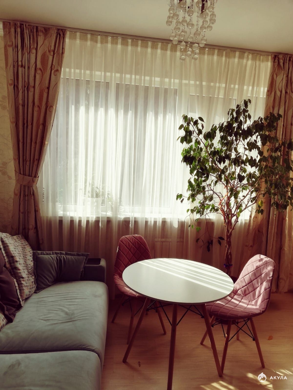 ✔️ две изолированные спальни (11, 3 кв. м. и 9.7 кв. м.), гостиная 21, 6 кв. м. с выделенной зоной кухни ("евротрешка")