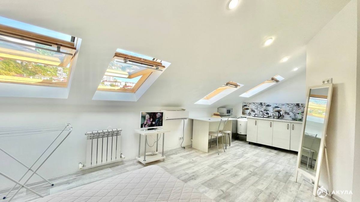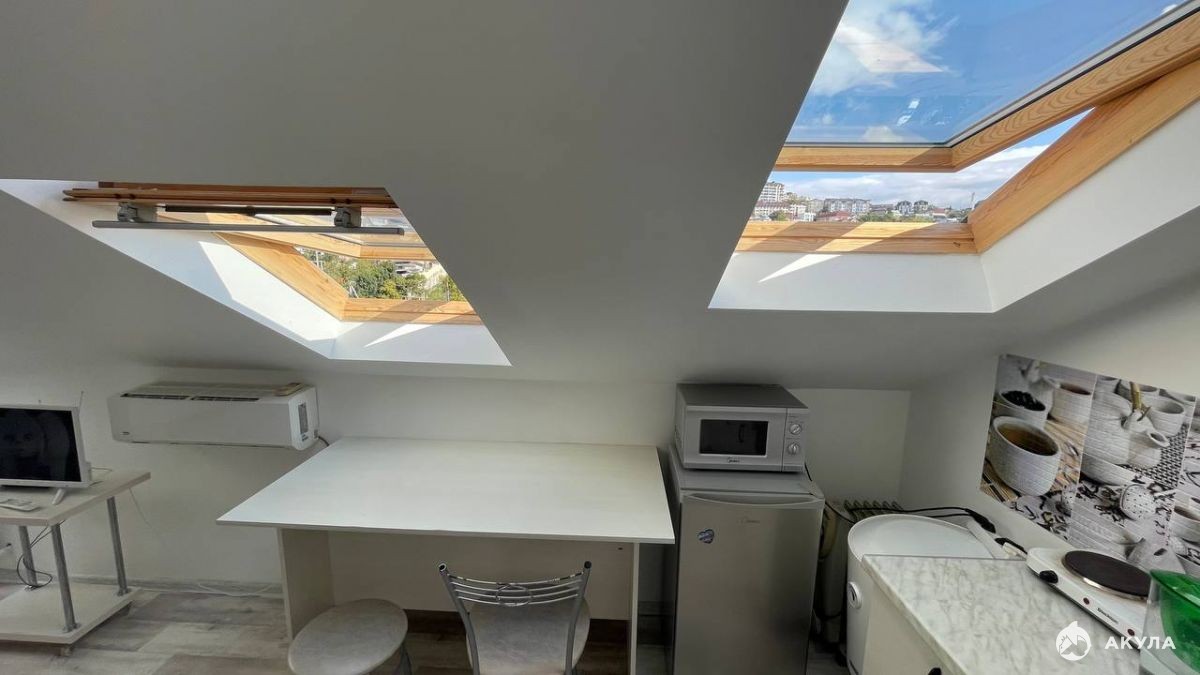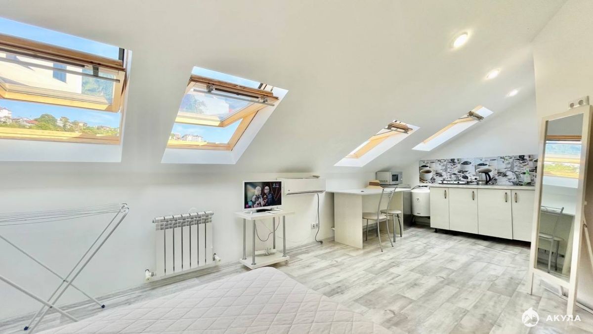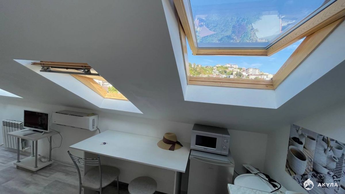 Квартира находится в жилом комплексе "Виноград" на Мамайке. Площадь 56 м2 была разделена на две отдельные квартиры со своими санузлами и кухнями. Окна квартиры обеспечивают великолепный вид на горы, который никогда не будет закрыт.