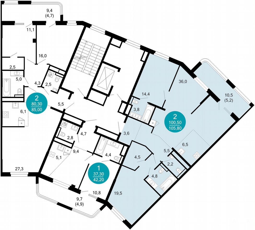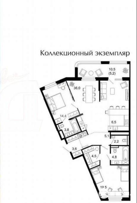 Коллекционный лот №21 - элитная резиденция 105, 8 кв.м с двумя мастер-спальнями и расширенными террасами.