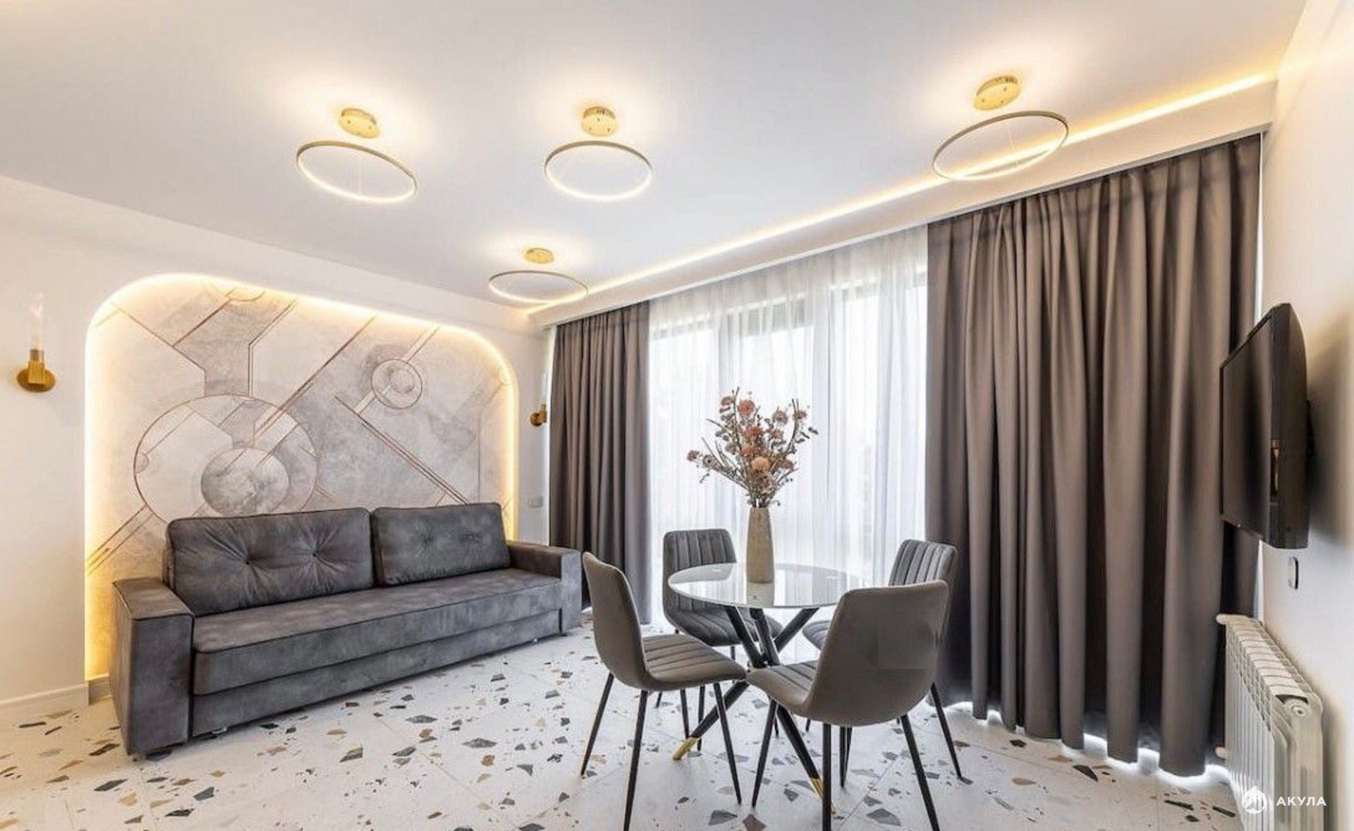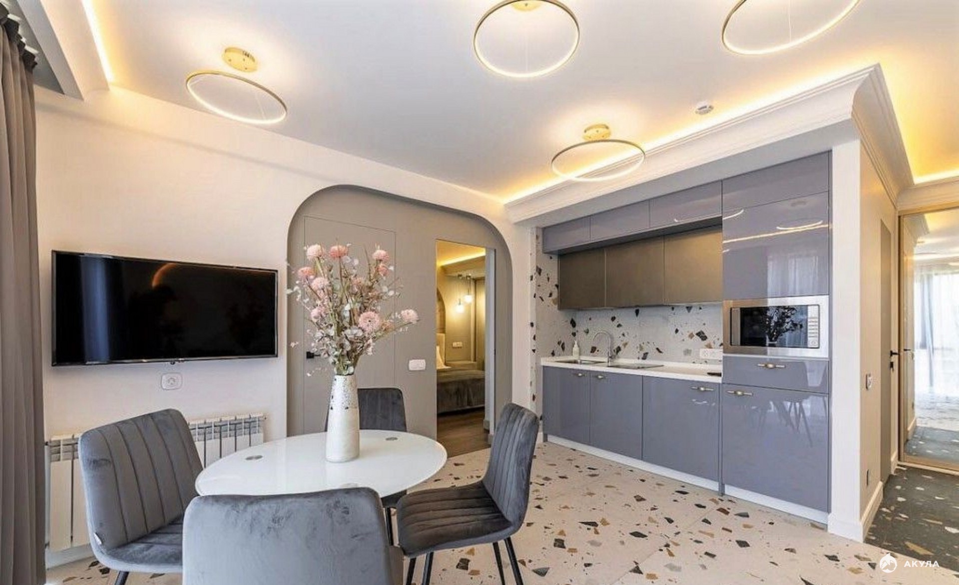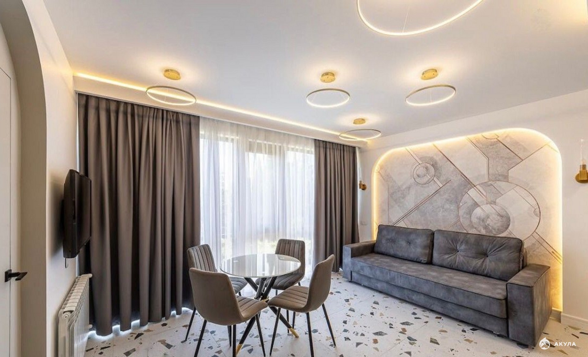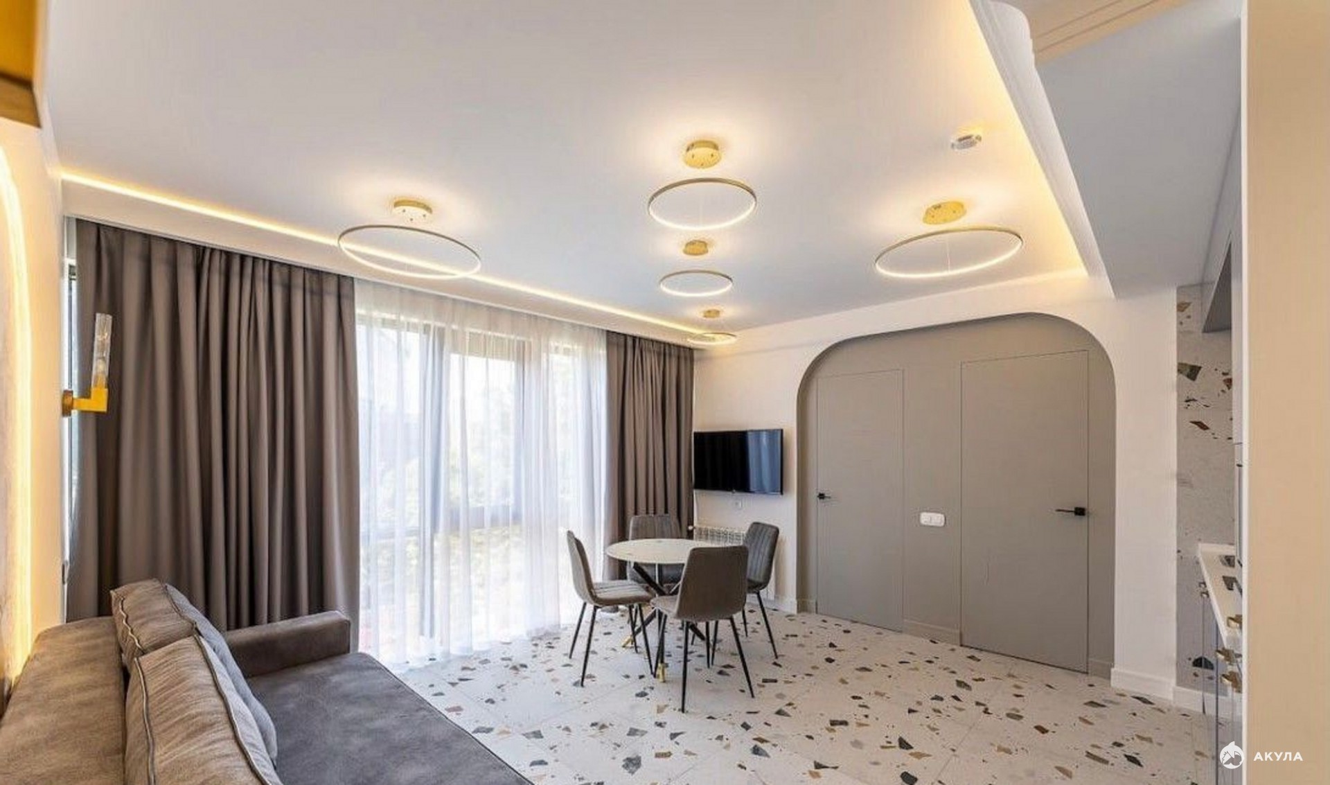 Квартира новая, отделка выполнена из дорогих материалов, полностью оснащена мебелью и техникой. До моря 400 м.