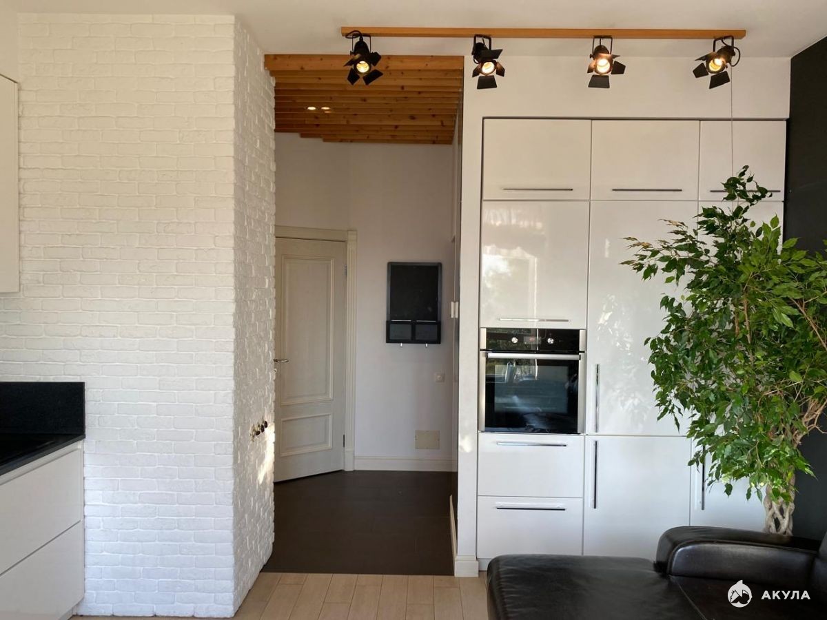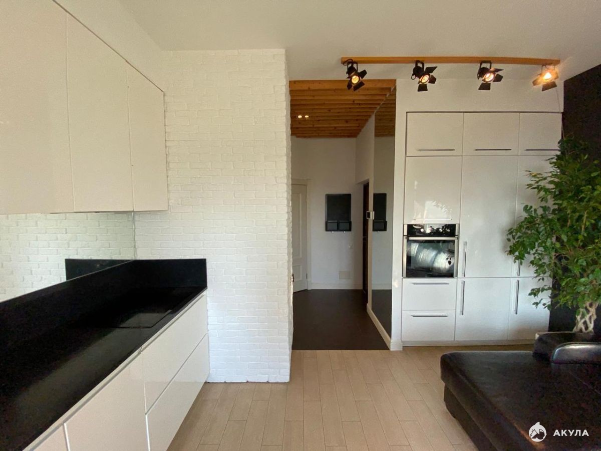 Квартира полностью мебелирована с использованием только дорогих материалов и техники.