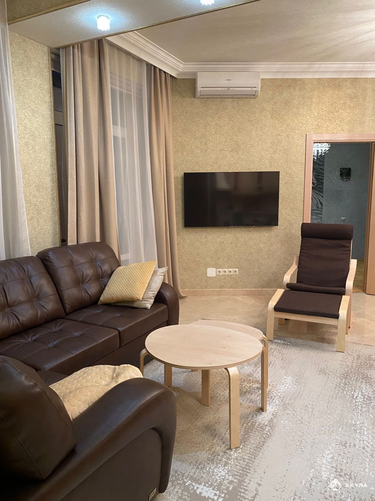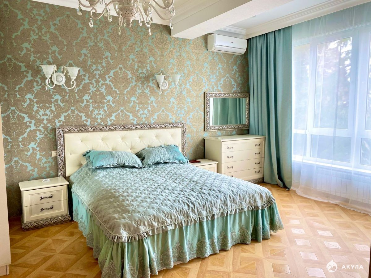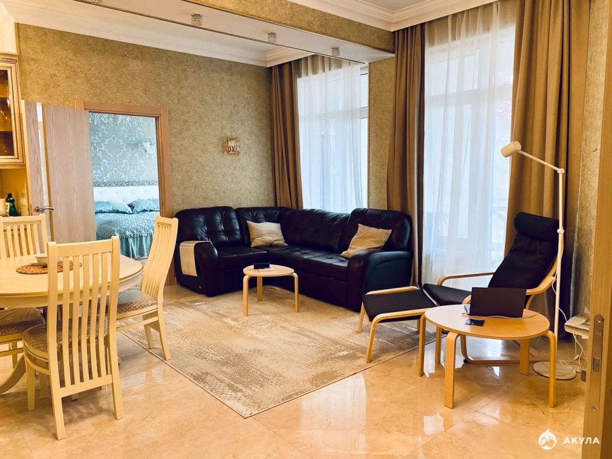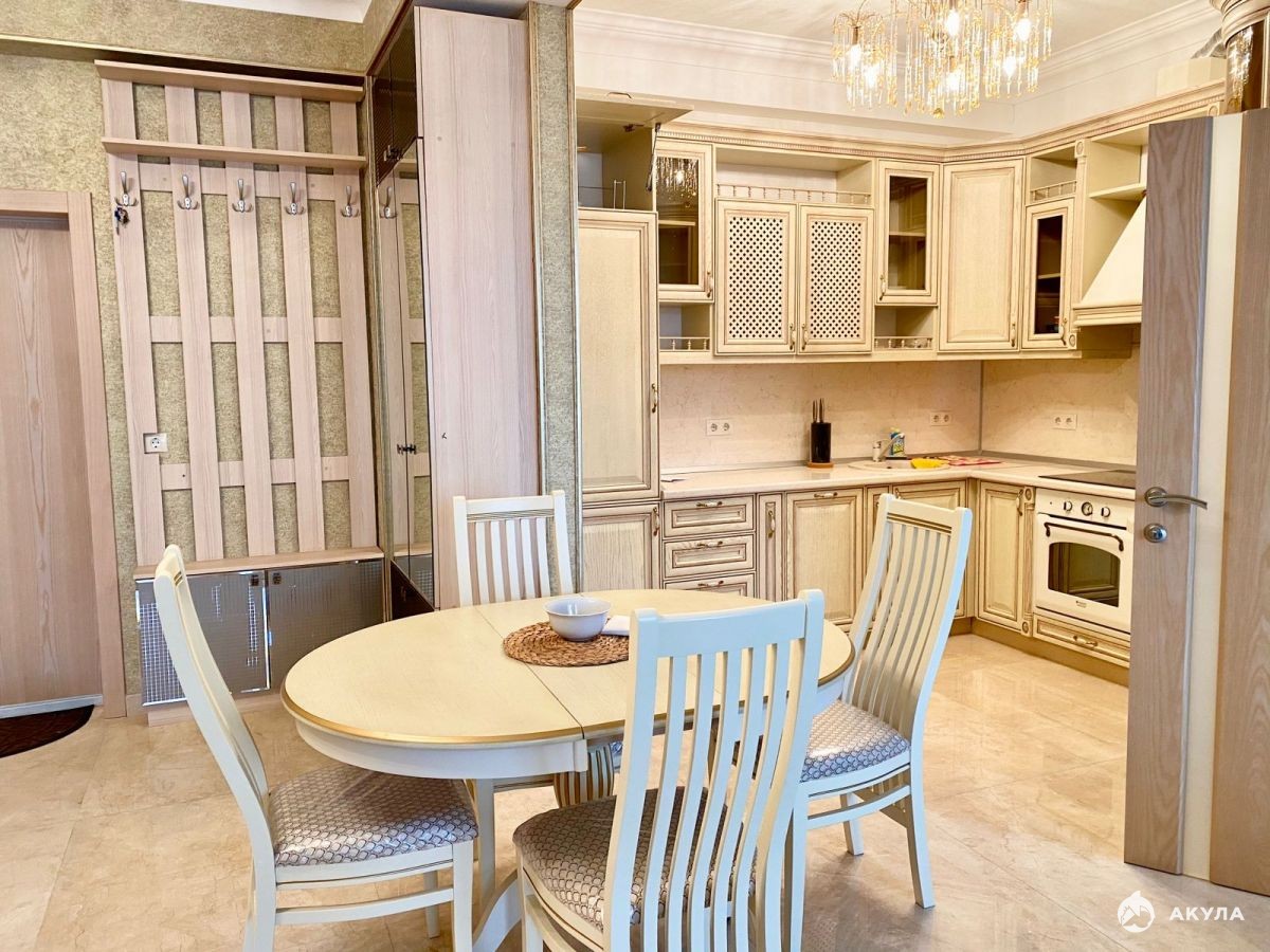 Квартира полностью мебелирована с использованием только дорогих материалов и техники.