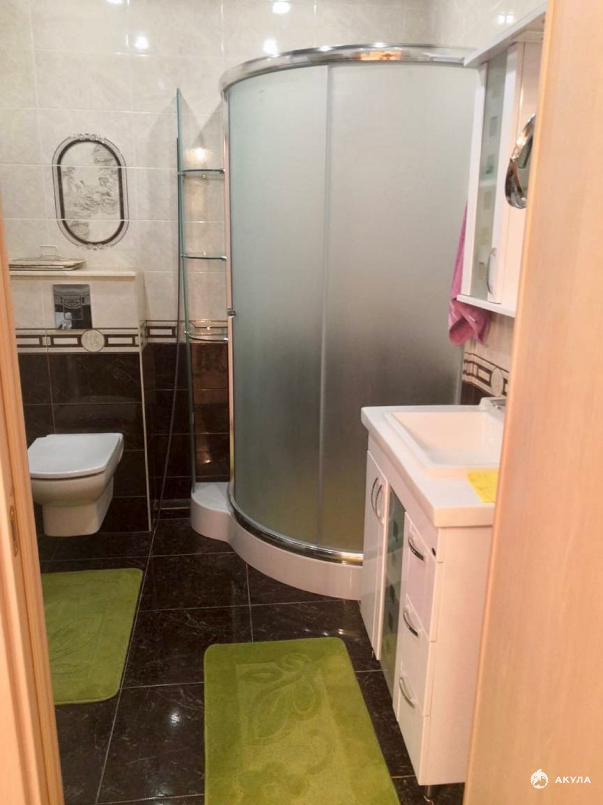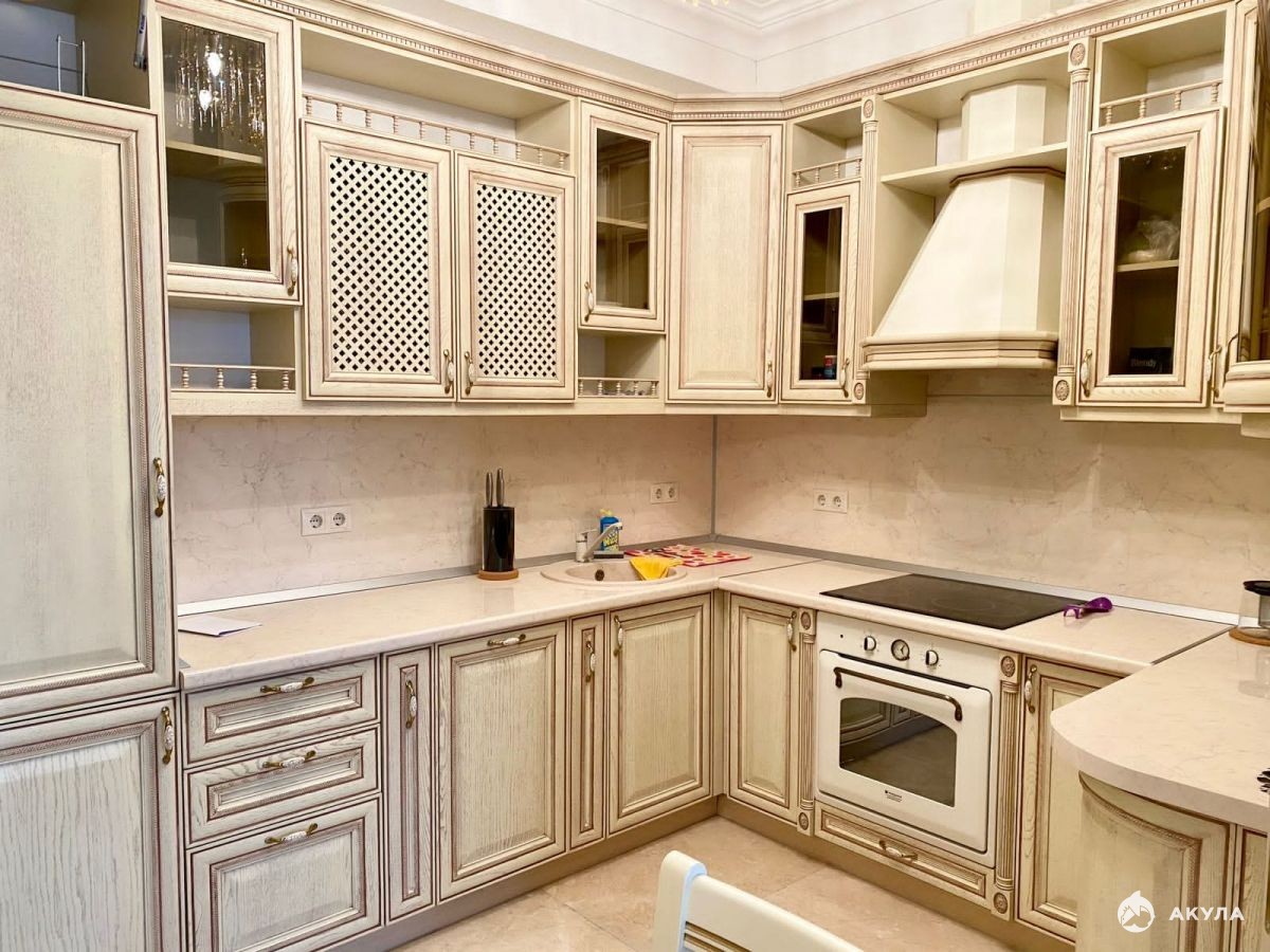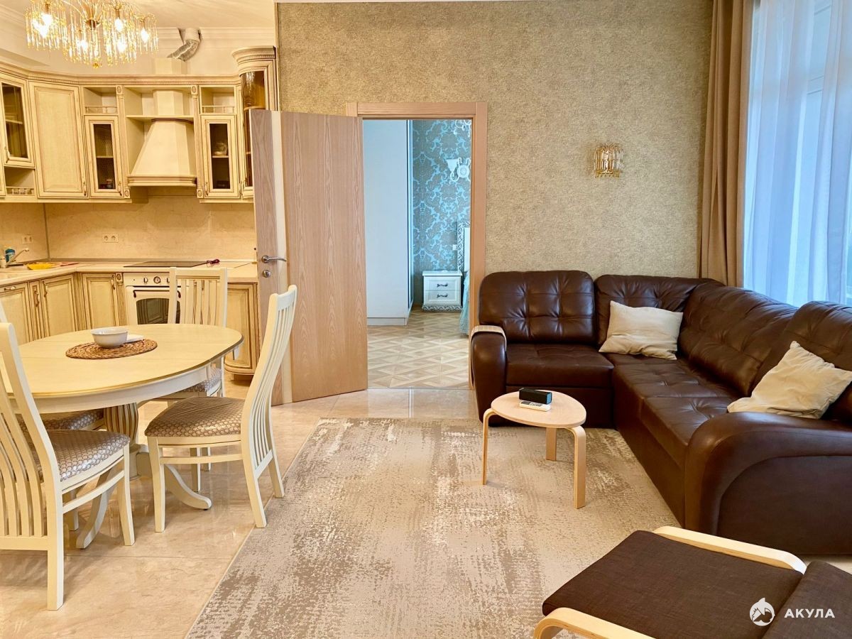 Квартира полностью мебелирована с использованием только дорогих материалов и техники.