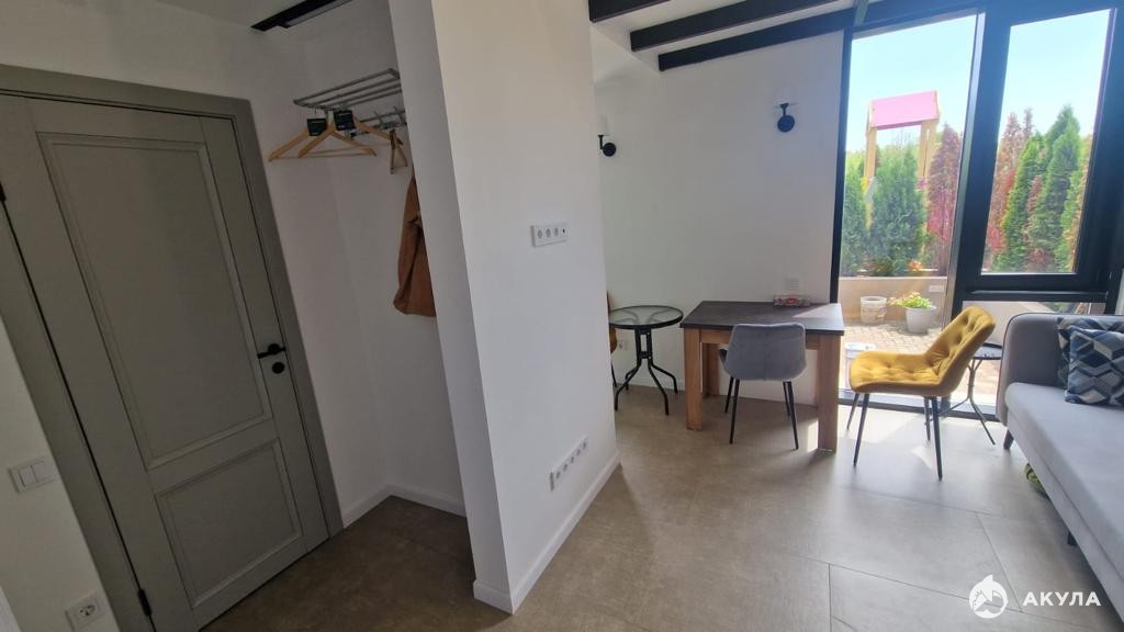 Из окон открывается вид на зеленый массив. Очень хорошая локация. Рядом остановка, рынок, магазины, до моря 5 минут на машине.
