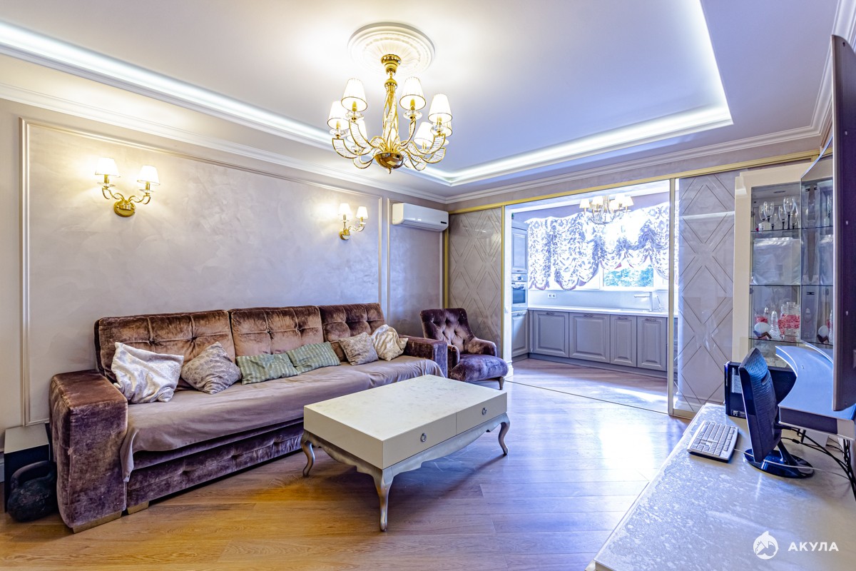 В квартире сделан дизайнерский ремонт выполненный из качественных дорогих материалов. Очень просторная кухня и спальные комнаты.