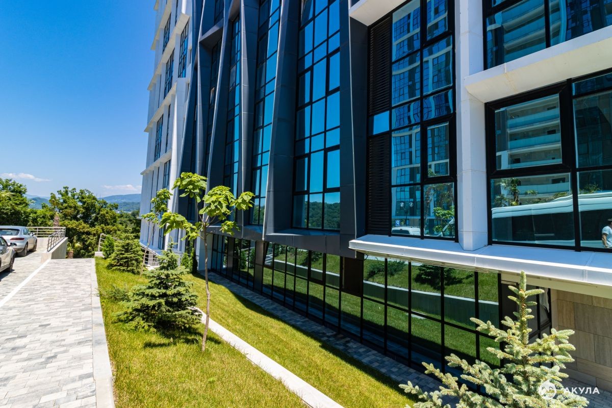 Предусмотрен торговый центр площадью 4900 м2, который разместится на последнем этаже многоуровневого паркинга. Отдельной изюминкой являются замечательные видовые характеристики из всех квартир: витражное, панорамное остекление позволит в полной мере оценить виды на море, город и горы заснеженного Кавказского хребта в сторону Красной Поляны.