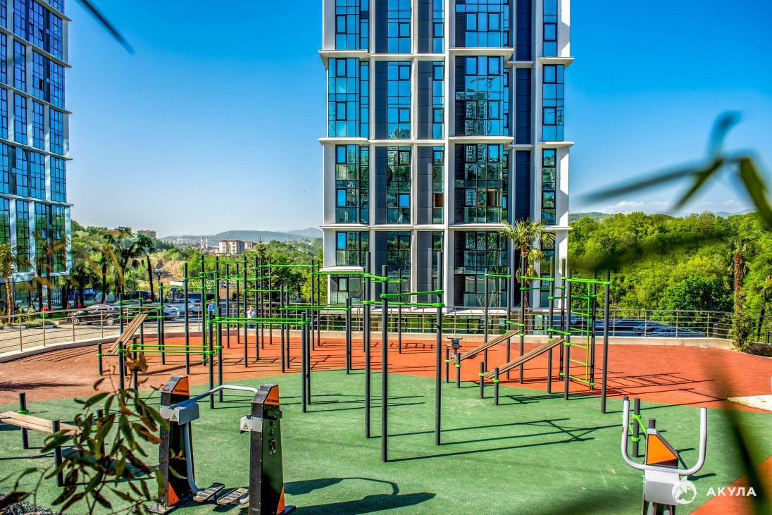 Предусмотрен торговый центр площадью 4900 м2, который разместится на последнем этаже многоуровневого паркинга. Отдельной изюминкой являются замечательные видовые характеристики из всех квартир: витражное, панорамное остекление позволит в полной мере оценить виды на море, город и горы заснеженного Кавказского хребта в сторону Красной Поляны.