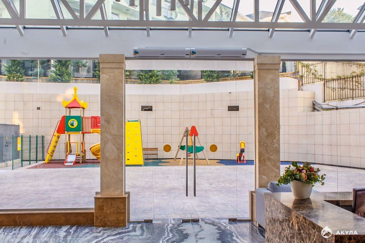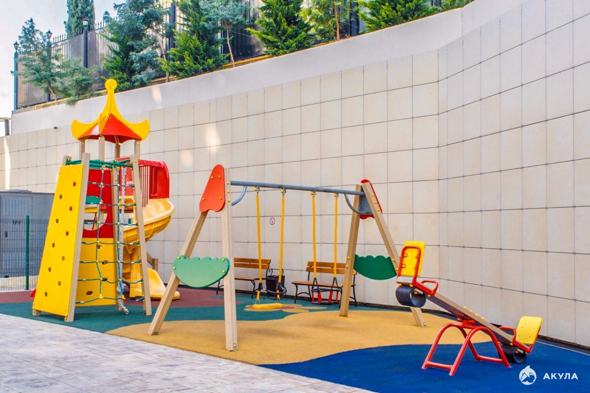 Территория облагорожена зелеными насаждениями, оборудована детская площадка, зона отдыха. Территория граничащего санатория "Металлург" открыта для прогулок для жильцов комплекса. Расстояние до пляжа составляет 600 метров. На прилегающей территории предусмотрена гостевая парковка.