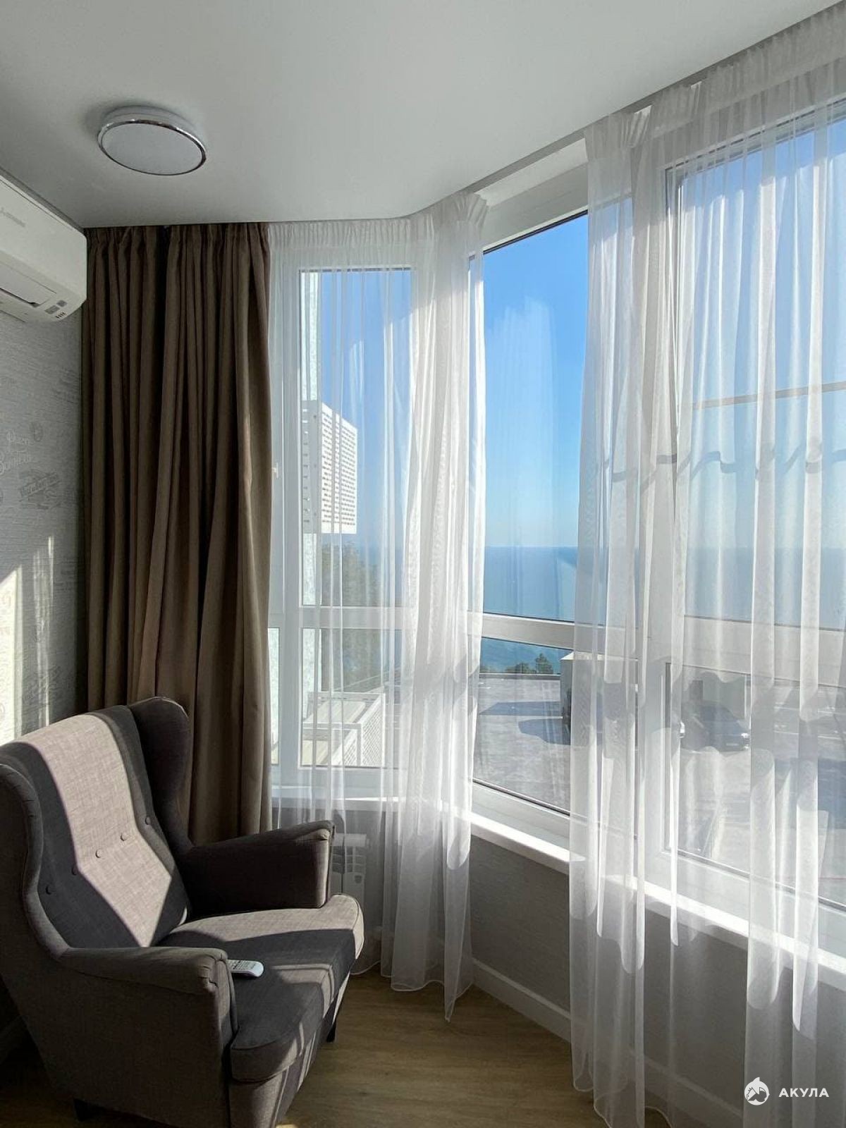 Из окон с панорамным остеклением открывается потрясающий вид на море.
