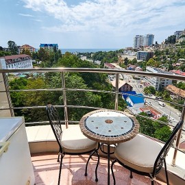 Трехкомнатная квартира в элитном районе города Сочи с евроремонтом и мебелью.Панорамный вид на море.