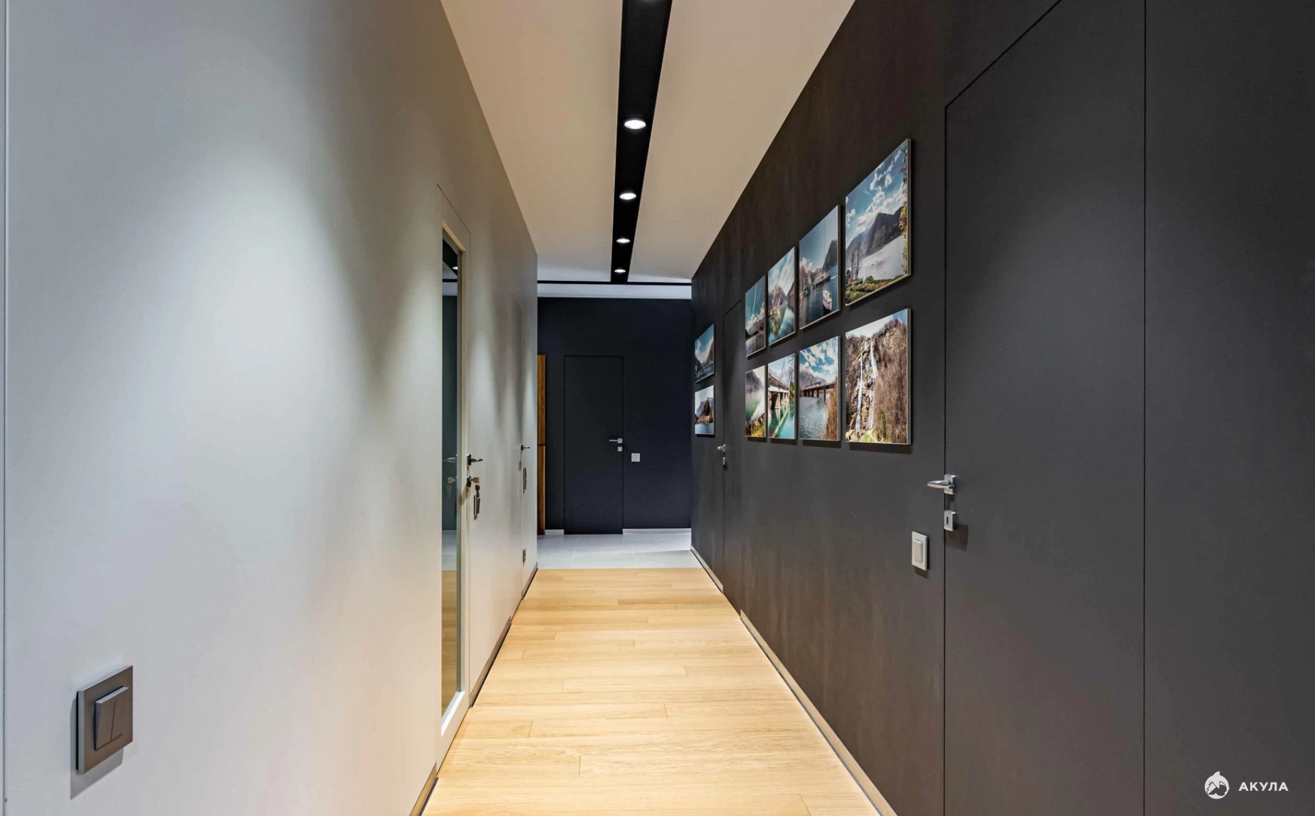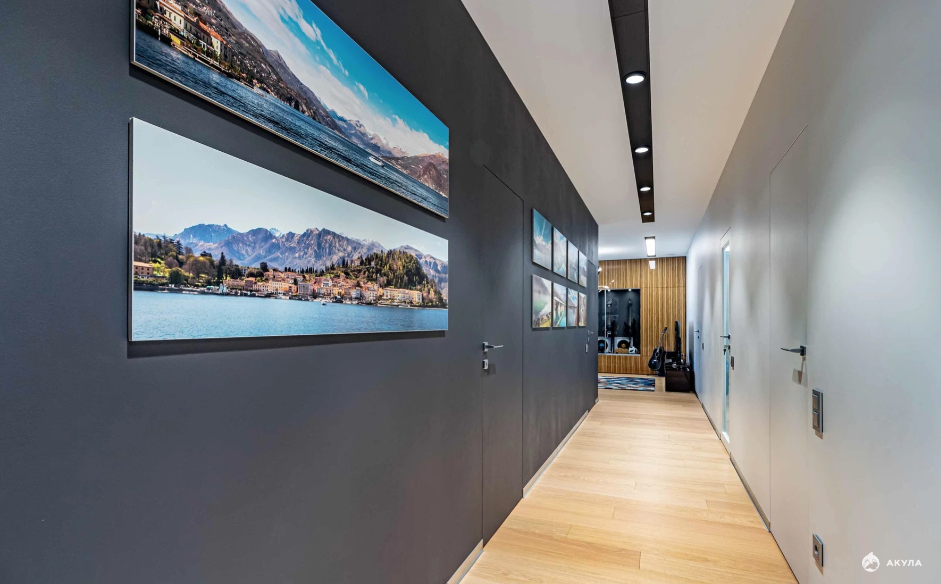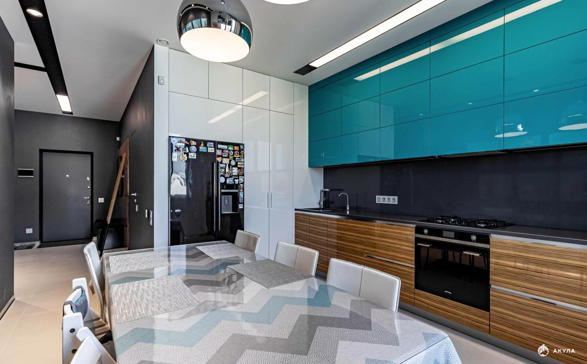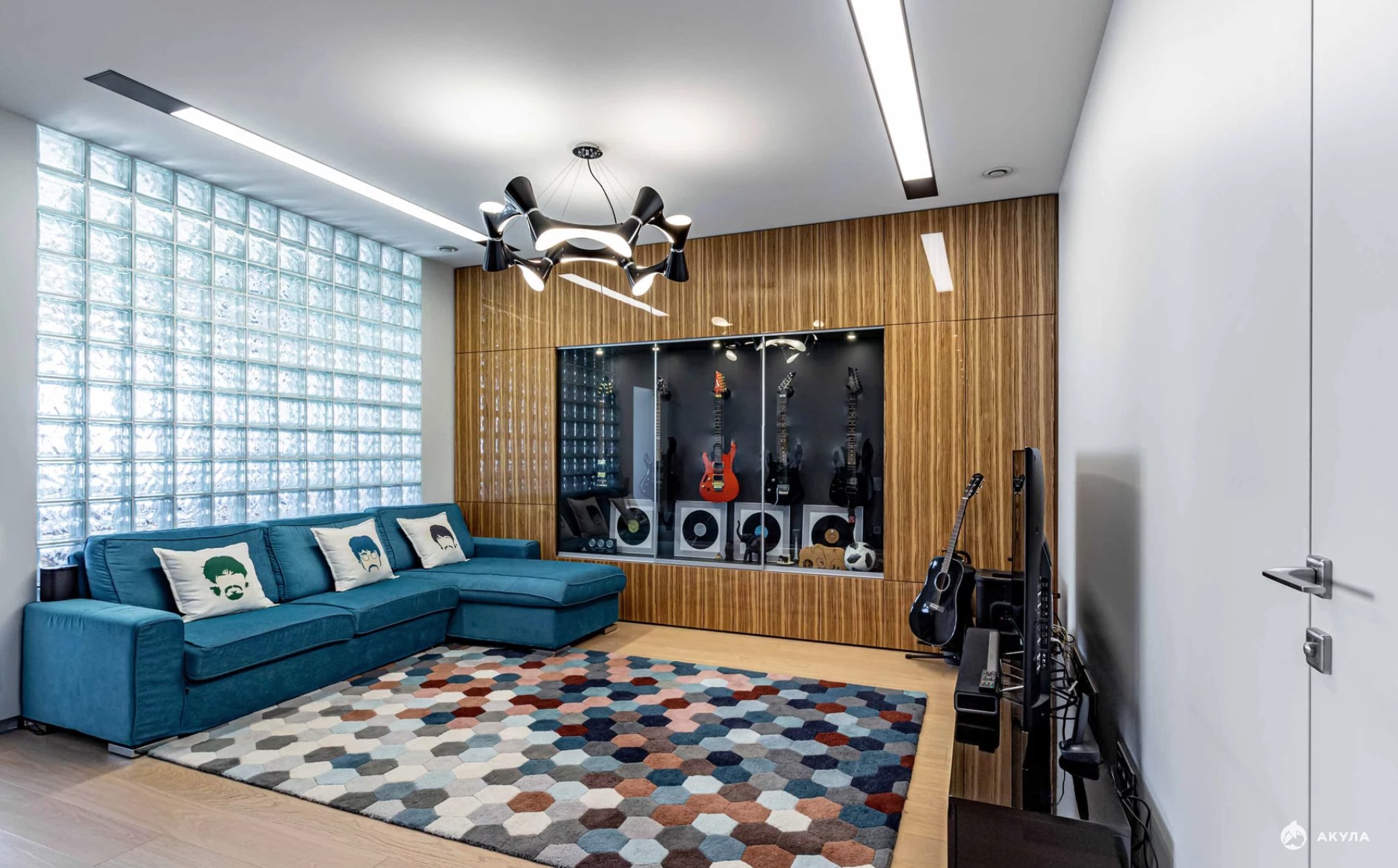 Квартира спланирована в полноценную трехкомнатную: изолированная гостиная, кухня, мастер-спальня со своей ванной и гардеробной комнатой, две детские комнаты - для мальчика и для девочки, второй санузел, кабинет. Ремонт выполнен в светлых натуральных оттенках с использованием акцентных пятен в виде декора. Ремонт делался для себя, использовались качественные материалы, дорогая мебель и техника, сантехника премиальных брендов.