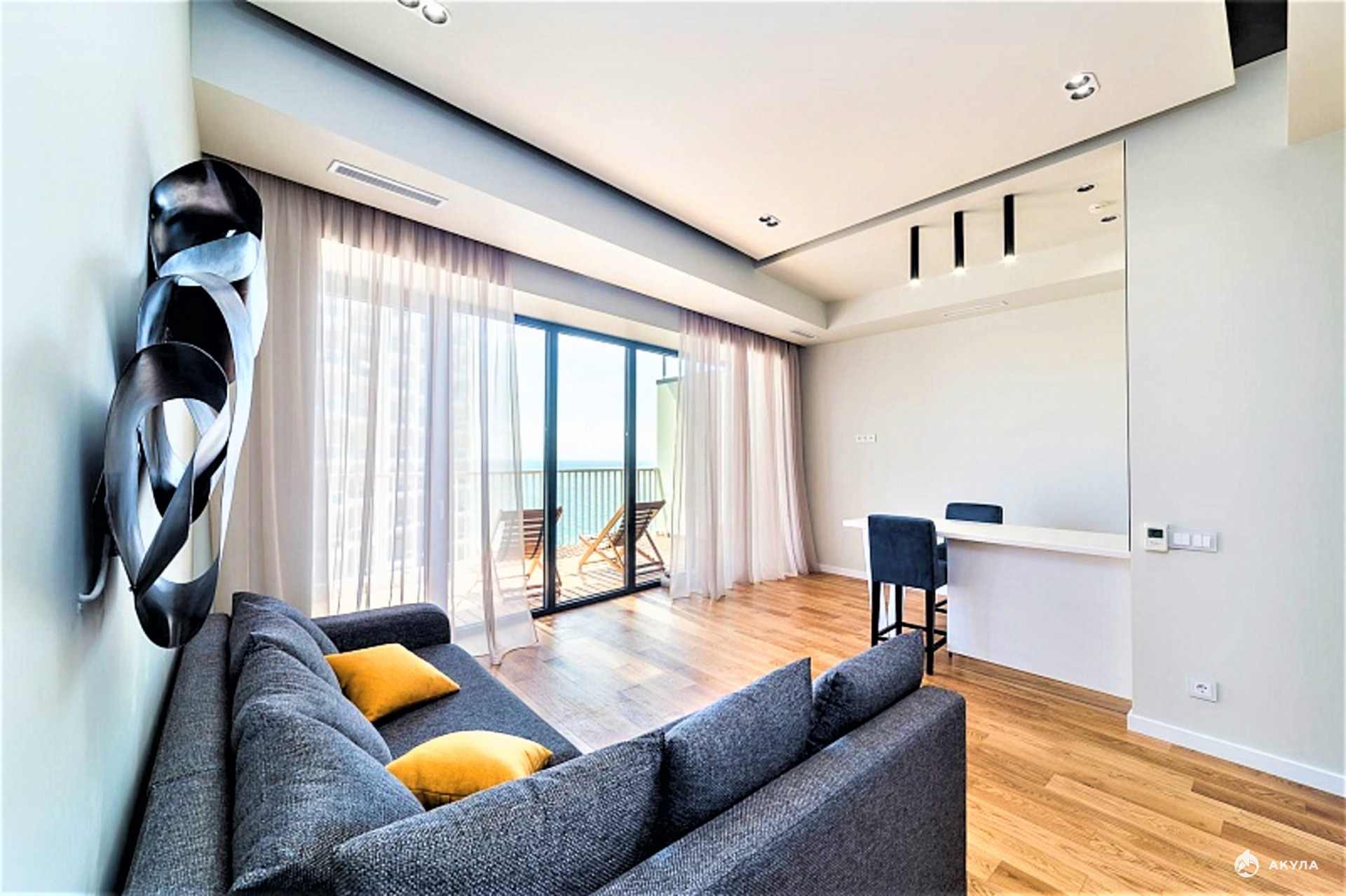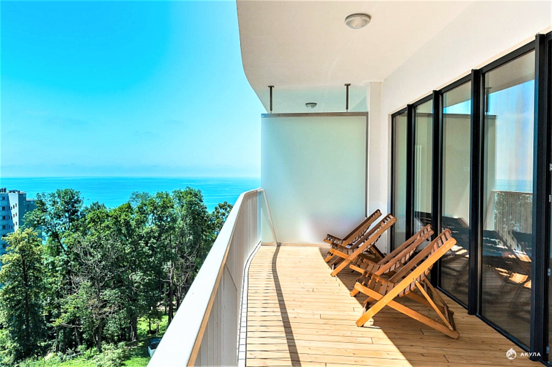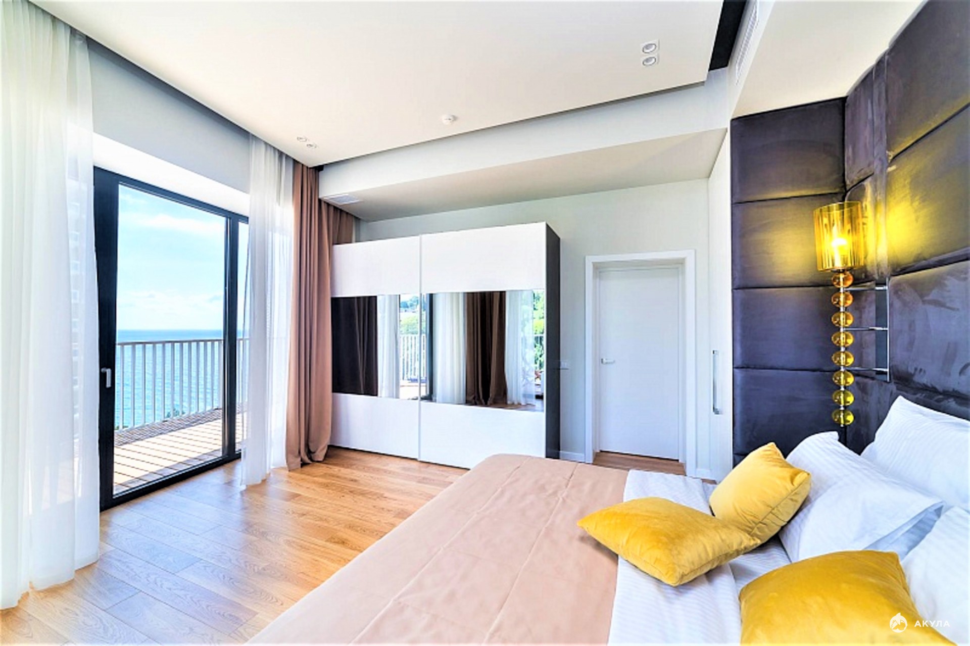 В квартире выделено две спальни, просторная кухня-гостиная, два санузла, большая терраса с видом на море.