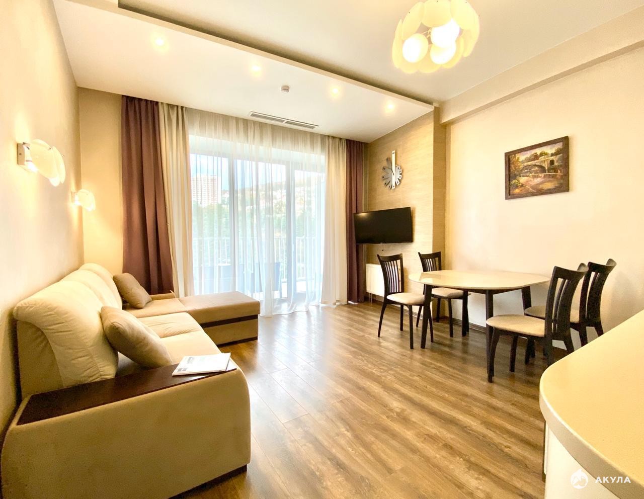 Локация комплекса уникальна. Находится на первой береговой линии. Недалеко от центра Сочи, при этом сохраняет свою приватность от шума городской суеты. Рядом остановки общественного транспорта, можно добраться в любую точку Сочи, Олимпийский парк.