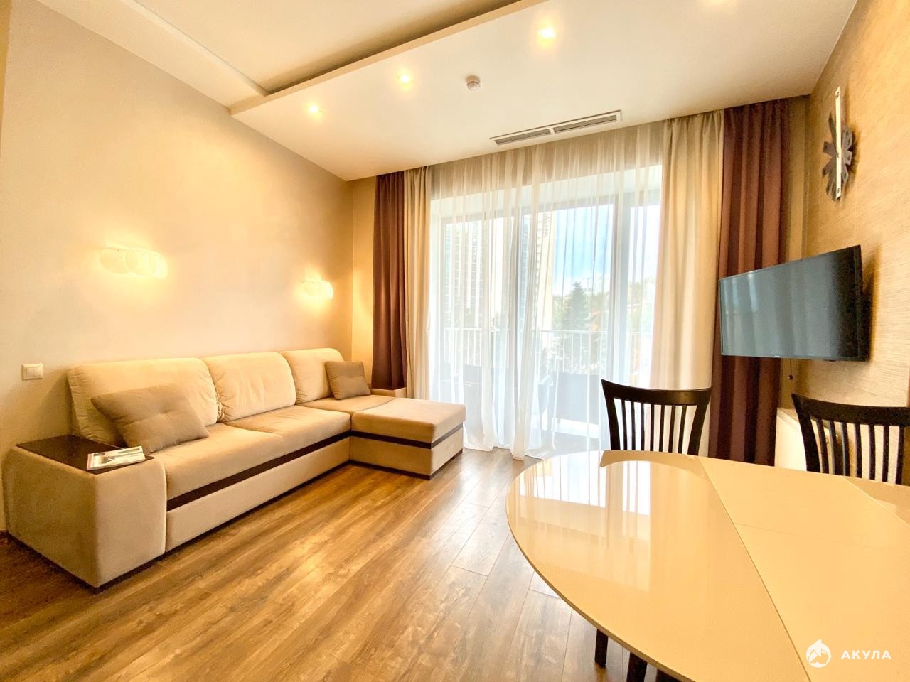 На территории комплекса ресторан и кафе с вкусной и качественной кухней, магазин, бассейн, стоматология, СПА цент, детская и спортивная площадка, рядом тропа здоровья «Теренкур» инфраструктура санатория «Актер»