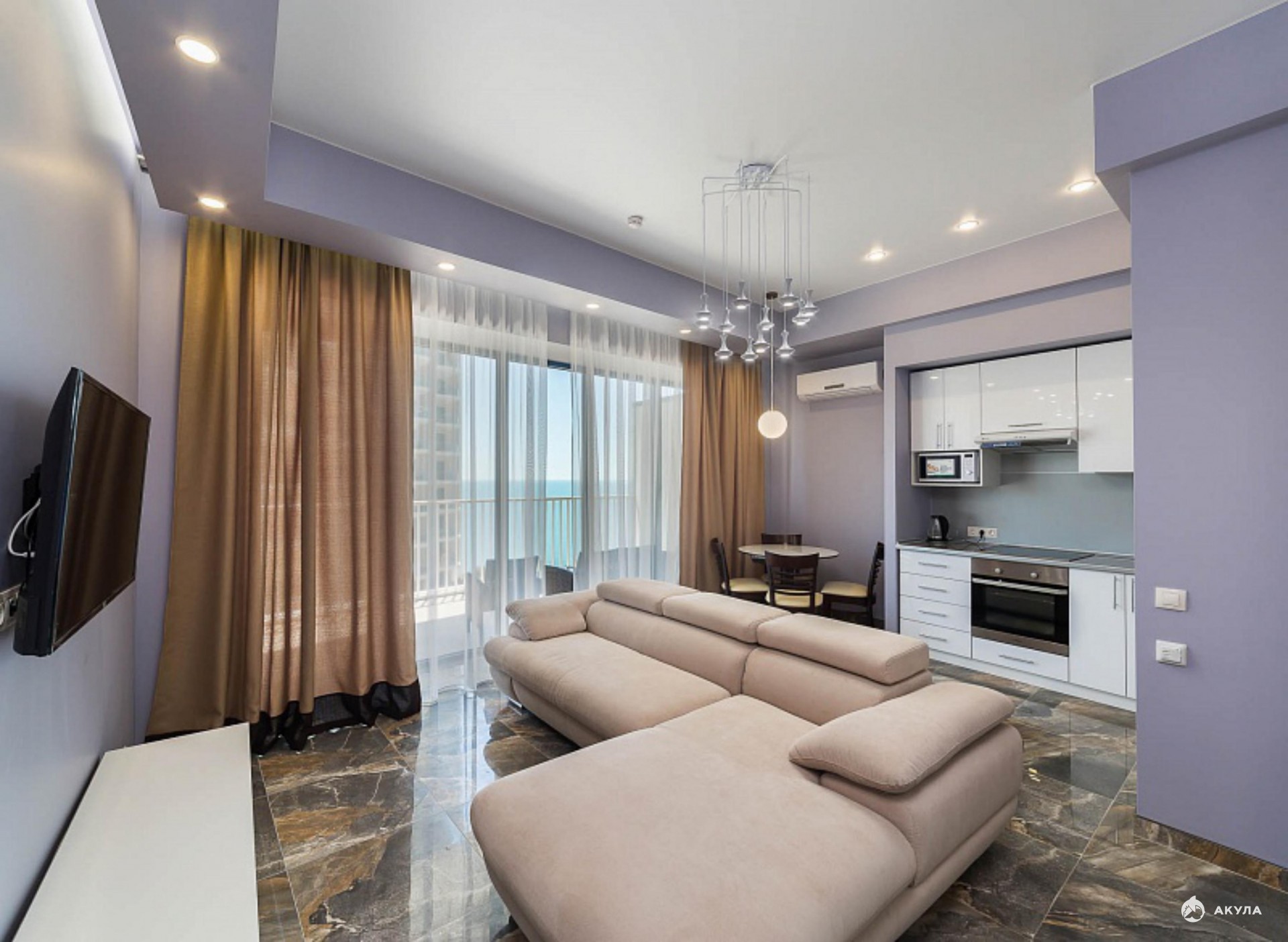 Продается элитная квартира в одном из лучших жилых комплексов горда Сочи – Актер Гэлакси. Отличная планировка: прихожая зона с множеством шкафчиков для хранения вещей, две изолированные спальные комнаты, совмещенный санузел и большая кухня-гостиная с выходом на открытый балкон с видом на море. В квартире выполнен отличный дизайнерский ремонт из качественных дорогих материалов. Также квартира полностью укомплектована всей необходимой мебелью и техникой премиальной серии.
