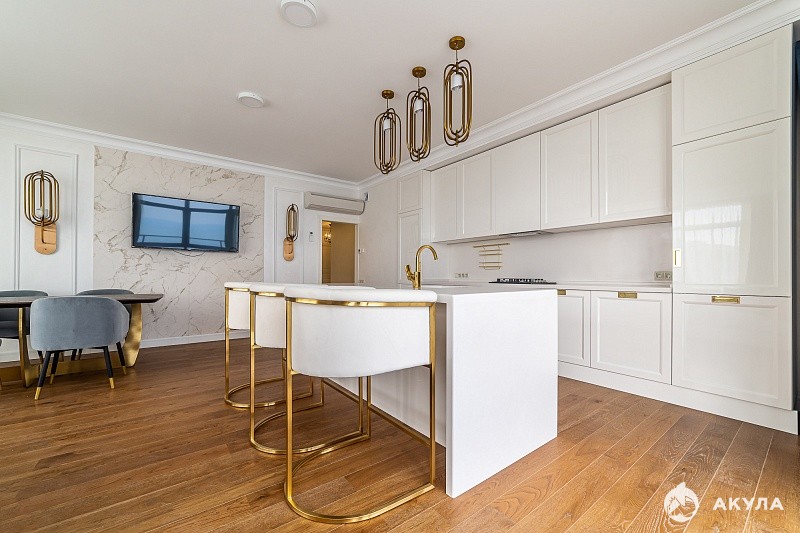 Общая площадь 150 кв. м с учетом балкона, с которой открывается потрясающий вид на море, город.
