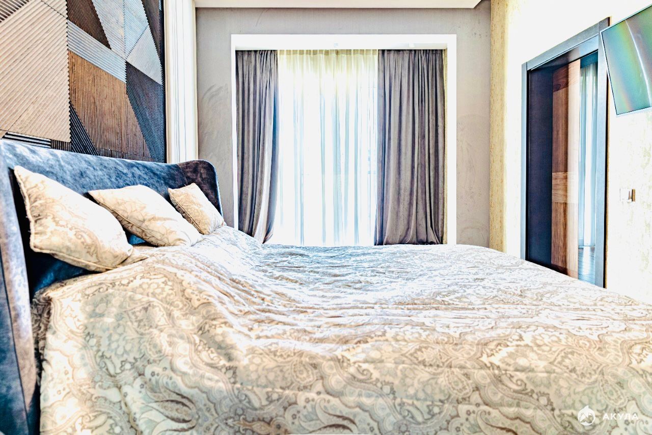 Качественный дизайнерский ремонт, комфортная и дорогая мебель и техника, панорамные окна с живописными видами на Черное море, морпорт и парк.