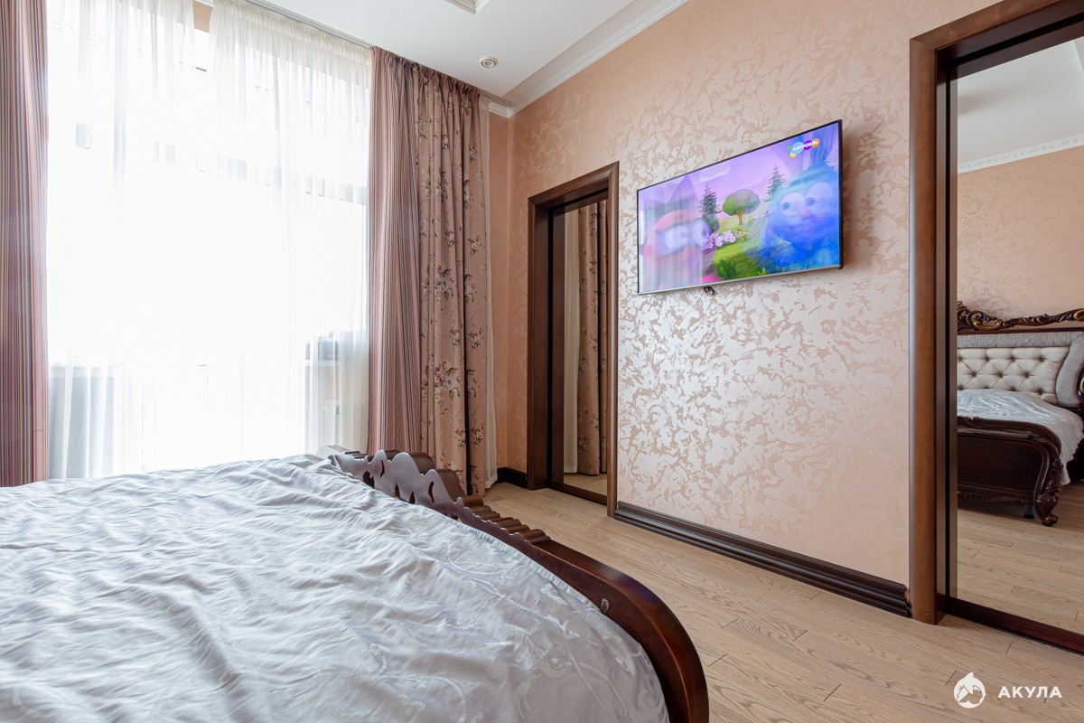 Продается роскошная квартира в Сочи с дизайнерским ремонтом. Общая площадь 160 м2, распланирована в две изолированные комнаты, большую кухню-гостиную, гардероб, балкон. Очень светлая и просторная квартира, высота потолков 3 метра.