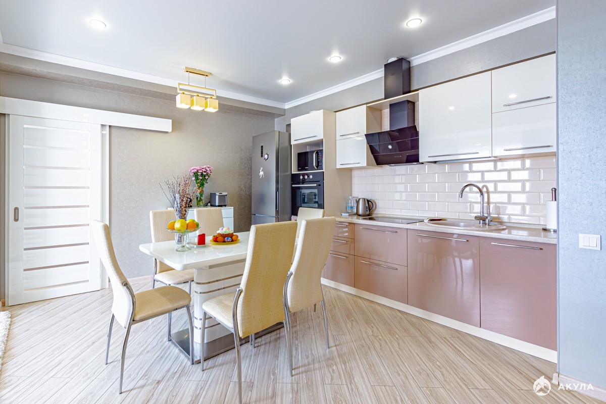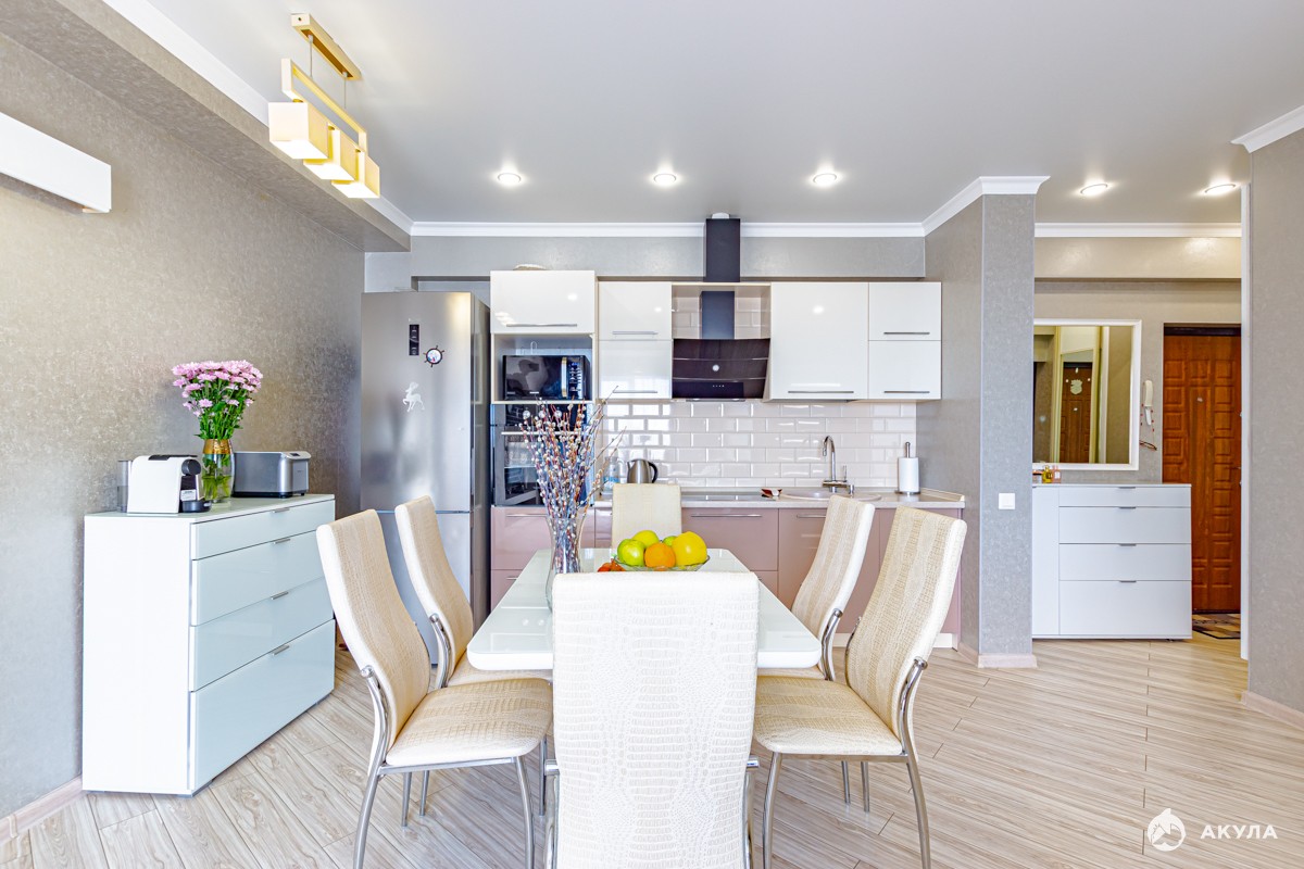 В квартире выполнен свежий, дизайнерский ремонт с дорогой мебелью.