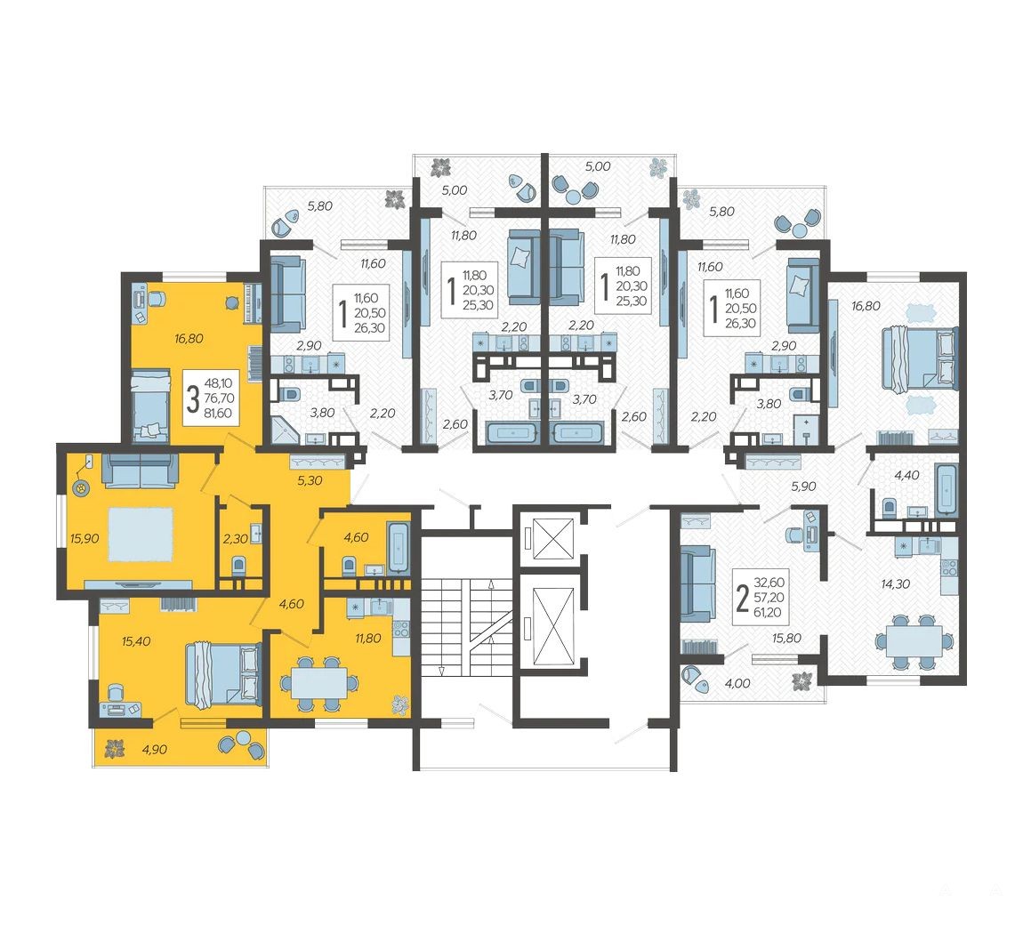 Продается 3-комнатная квартира в доме (Литер 2), срок сдачи : 3 кв. 2026, общей площадью 81.6 кв.м., на 3 этаже в новом современном жилом комплексе в Сочи «Горный квартал», Хостинский район. Отличный вариант для инвестиций и жизни.