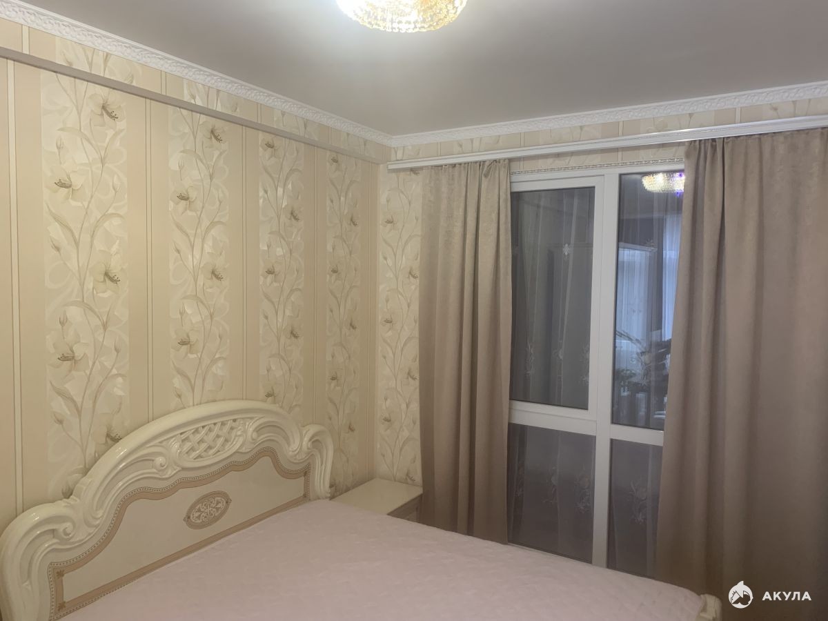 Просторная кухня, две спальни и большой балкон.