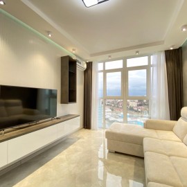 Любоваться морским пейзажем все еще Ваша мечта? Уже сегодня это может стать Вашей реальностью! В продаже прекрасная евро-трехкомнатная квартира с замечательным дизайнерским ремонтом! Две полноценные выделенные спальни, кухня-гостиная, гардероб, встроенная кухня и...