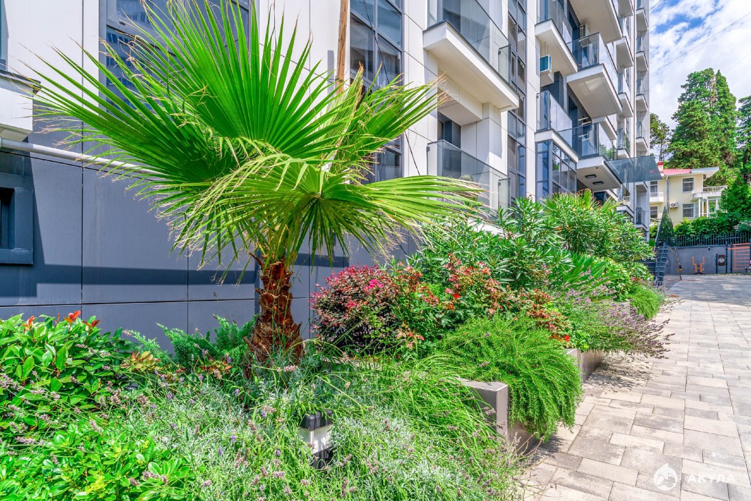На территории дома расположена зона отдыха, детская площадка, вся территория будет облагорожена лучшими специалистами по ландшафтному дизайну города Сочи. Придомовая территория огорожена и находиться под круглосуточным видеонаблюдением. Номер объекта: #5/544464/11901