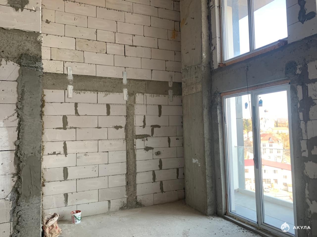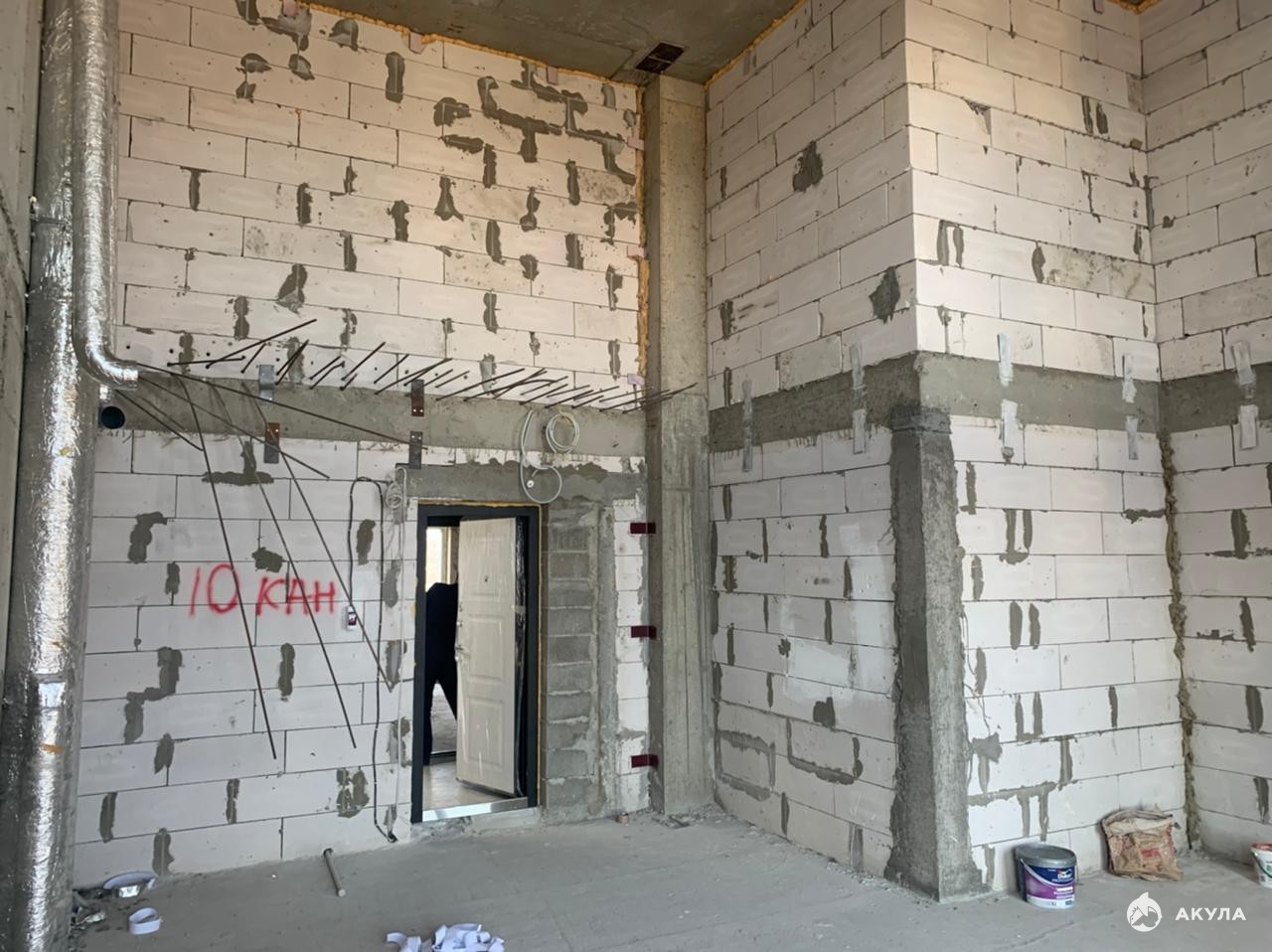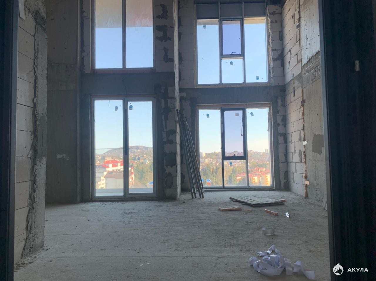 Квартира двухуровневая: первый уровень планируется в кухню-гостиную, гостевую спальню и гардеробную, второй уровень планируется в две полноценных спальни и просторную ванную комнату. В квартире выполнена предчистовая отделкастяжка пола, штукатурка стен.