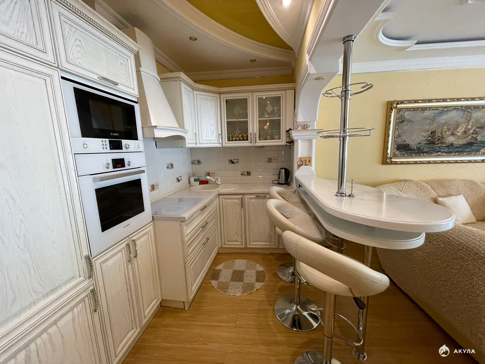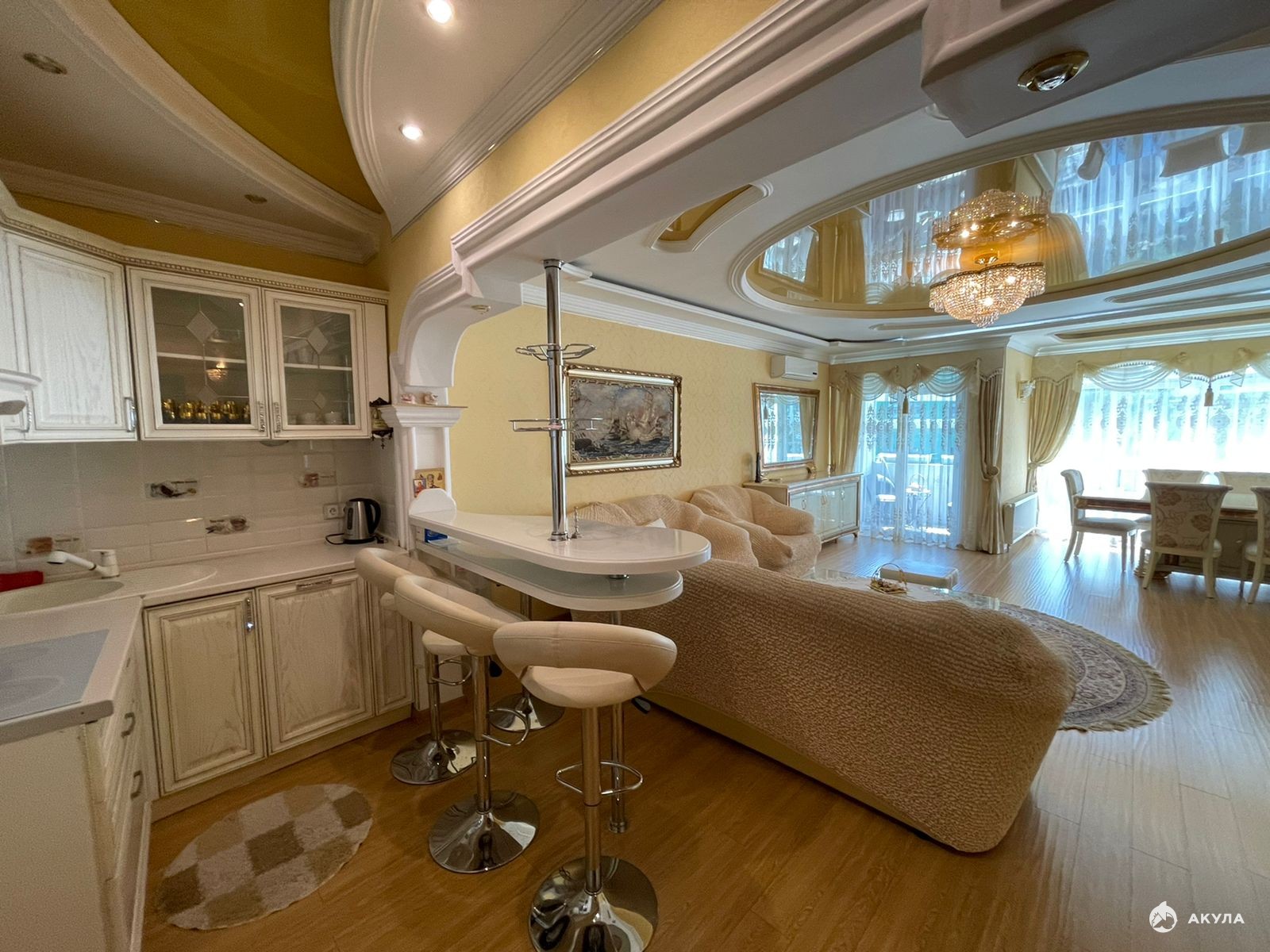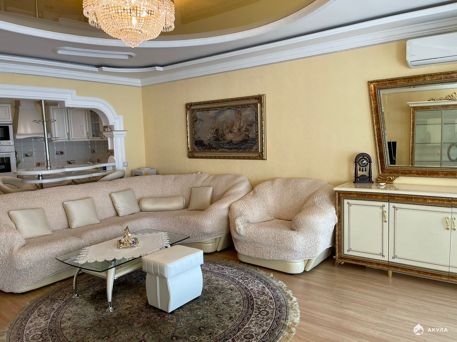 Полноценная квартира с двумя спальнями, кухней-гостиной, имеющей панорамные окна с видом на море, гардеробной и двумя санузлами.