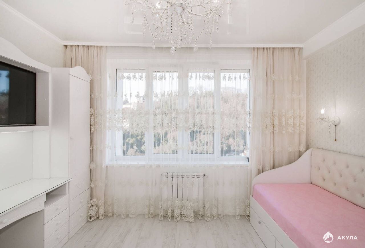 Отличное планировочное решение: просторная кухня-гостиная, три спальни и балкон. Квартира полностью укомплектована мебелью и техникой. Имеются электрические тёплые полы, 4 кондиционера. Панорамные окна с видом на море и горы.