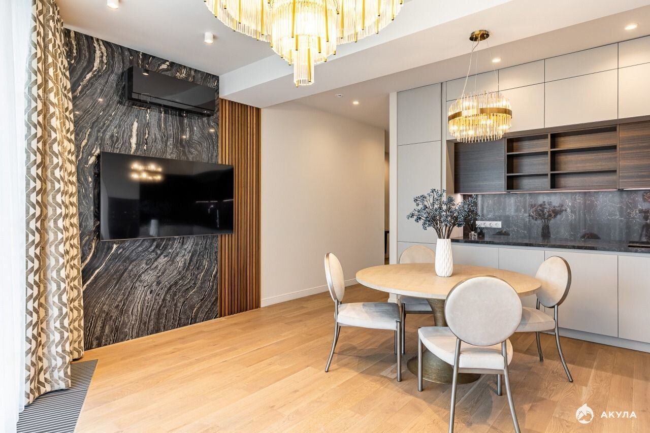 Квартира очень просторная и светлая, благодаря панорамному остеклению. Ремонт новый, сделан из премиальных материалов. В квартире никто не жил.