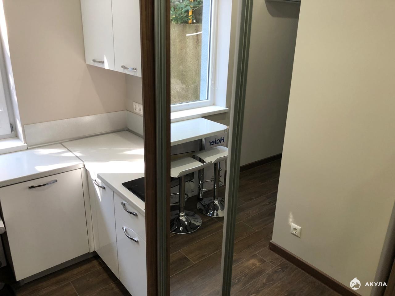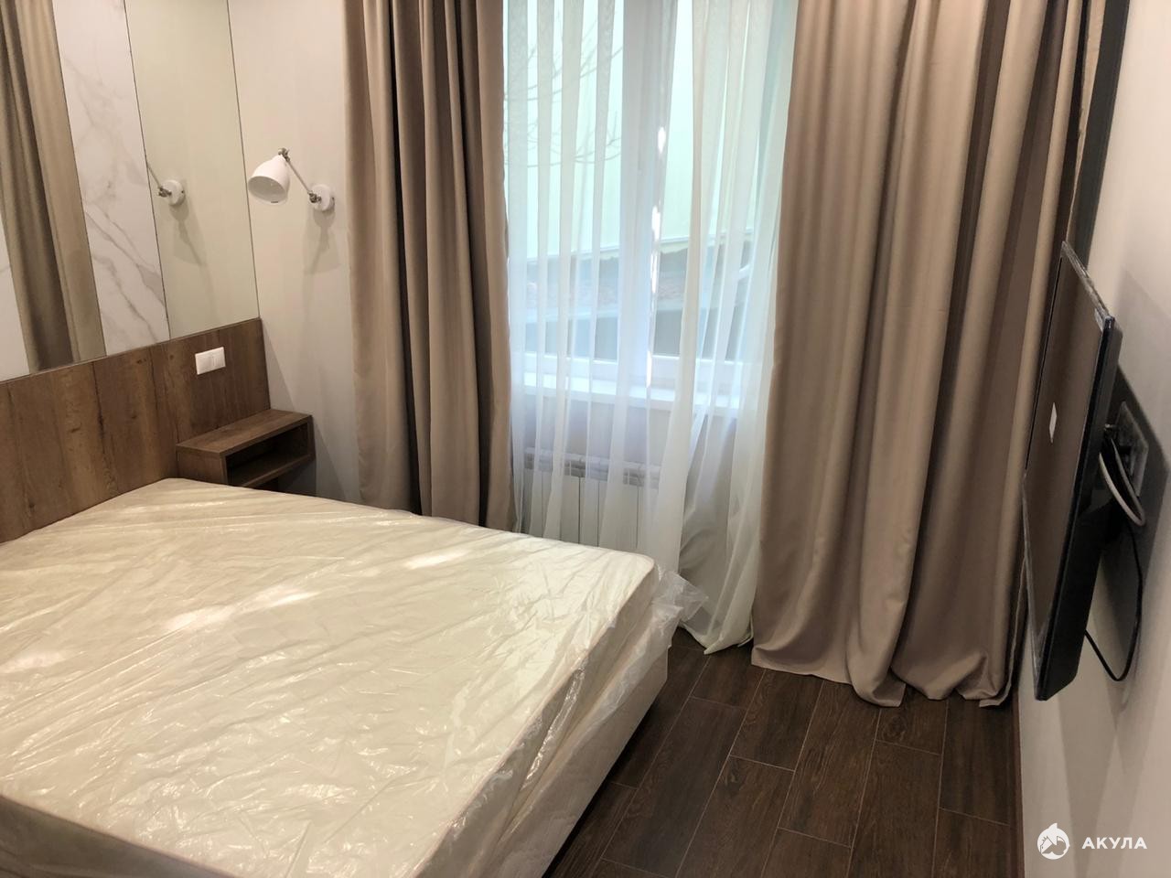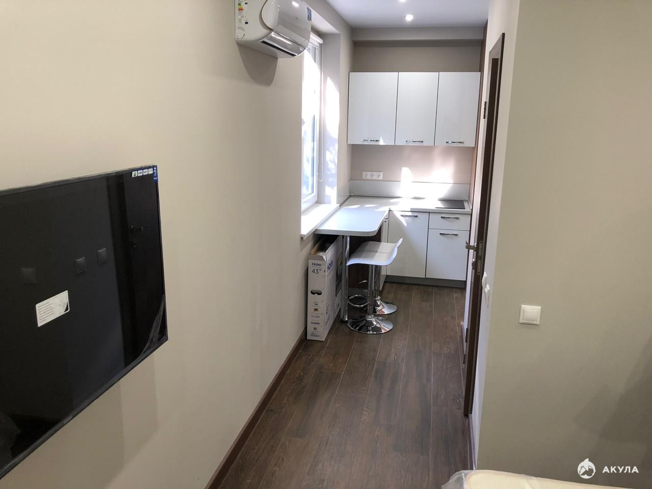 Выполнен качественный ремонт, установлена мебель - шкаф купе, кровать с матрацем, кухонный гарнитур, барная стойка, стулья, оборудованная прихожая, так же имеются - электроплита, кондиционер, телевизор и холодильник, установлены светильники, полностью оборудованный санузел.