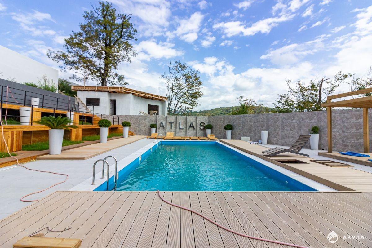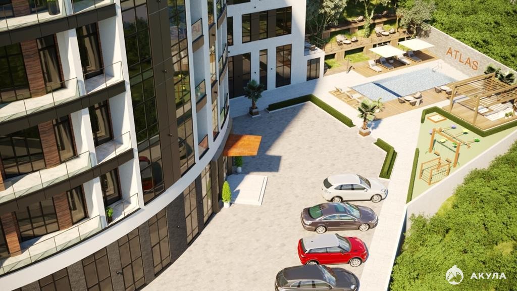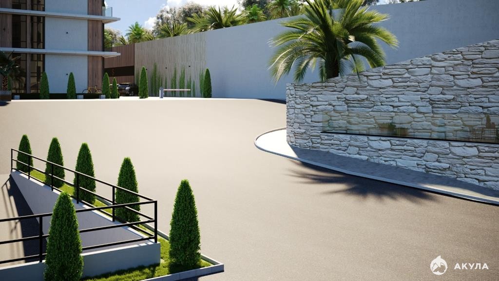 На территории жилого комплекса расположены: просторная зона для отдыха и занятий спортом, подогреваемый бассейн открытого типа, зона барбекю, детская и спортивная площадки. Имеется подземный паркинг на 18 машиномест и наземная гостевая парковка. Закрытая придомовая территория под круглосуточным видеонаблюдением и освещением.