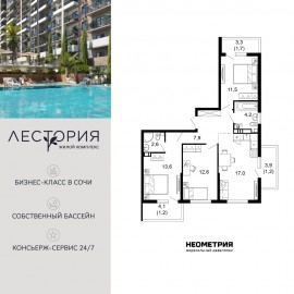 Продается квартира в жилом комплексе бизнес-класса «Лестория». В составе ЖК предусмотрена собственная аквазона площадью 473 квадратных метра с двумя подогреваемыми бассейнами, что соответствуют стандартам бизнес-класса. Аквазона объединяет взрослый и детский бассейны....