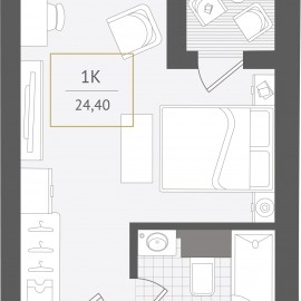 1-комн. апартаменты-студия от застройщика с отделкой в Гостиничный комплекс «Нескучный сад» на 8 этаже. Общая площадь: 24.4 кв.м., площадь гостиной 15 кв.м., из которых 5 кв.м. выделено под кухонную зону. Все окна выходят на одну сторону. В апартаментах одна лоджия, один совмещенный...
