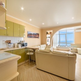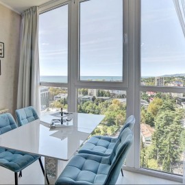 Замечательная квартира в центре Сочи в 450м. от моря с панорамным видом на город и море. В куне-гостиной два окна, спланирована очень удобно, отдельно зона отдыха и зона кухни, в которой органично вместилась вся бытовая техника. Санузел совмещен, дорогой кафель и импортная...