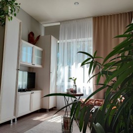 Хороший ремонт. В студии выделена зона кухни (плита электрическая), спальная зона, вместительный платяной шкаф, стенка, санузел совмещённый, удобная ванная, проведён интернет. Окно выходит на тихую сторону, вдали от машин, с огромным кедром за окном, что даёт тень и красивый...