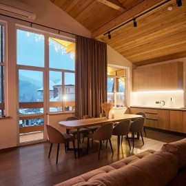 Продаются шикарные апартаменты в центре Красной поляны с панорамным видом на горы. Комплекс располагается в центре Красной поляны на высоте 760 м над уровнем моря. До ближайшего подъемника Газпром-Альпика 100 метров. До Розы Хутор 4 минуты на машине. Все...