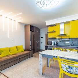 Квартира в элитном комплексе, с хорошим ремонтом, вид на фонтан. Район Светлана, до моря 700 метров. Рядом торговый центр, салон красоты, остановка прямо у комплекса. Дом бизнес класса, с эксплуатируемой крышей: бассейн, шезлонги, тренажеры, спортивный корт, беседки, детская...