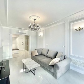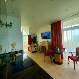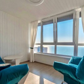 Квартира с дорогим, дизайнерским ремонтом, пол натуральный камень, мебель ручной работы, венецианское стекло, камин с живым огнем, джакузи на 4 человека. Оставляем всю мебель и технику. Два телевизора один в ванной! Вид на море и горы. Две просторные лоджии. Два балкона при...