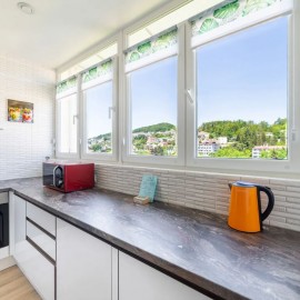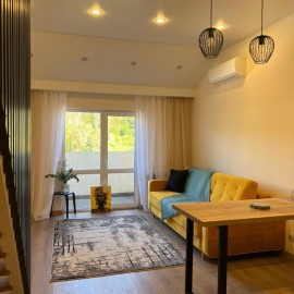 Квартира двухуровневая. Распланирована как большая кухня-гостиная и 2 спальни, санузлы на 1 и на 2 этаже. Со второго этажа выход на большую террасу с видом на море и горы видно Ахун. В квартире хороший влагоустойчивый ламинат и керамогранит производства Испания, система...
